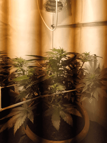 Вначале третьей неделе гровер пересадил кусты в пластиковые горшки объемом 19 л и установил световой режим 12/12, а на четвертой уже появились завязи на макушках и в узлах роста. Температура в гроубоксе поднялась до 27 градусов, а влажность опустилась до 50%. Расстояние от макушек до лампы было 50 см. Гровер продолжил давать те же удобрения, но в дозировке 10 мл/л. Также в подкормку добавил 2 мл/л Sensi Cal-Mag Xtra.