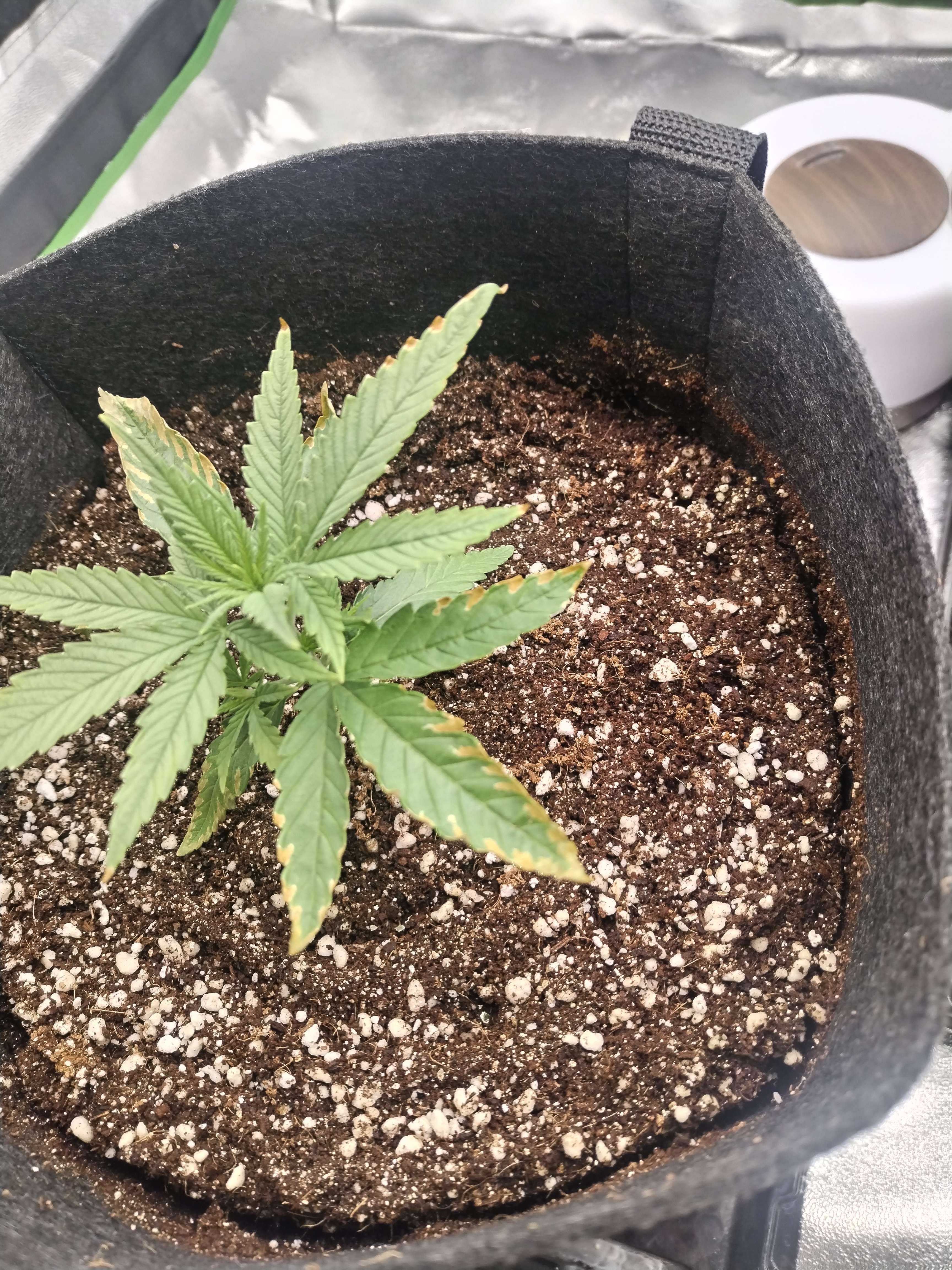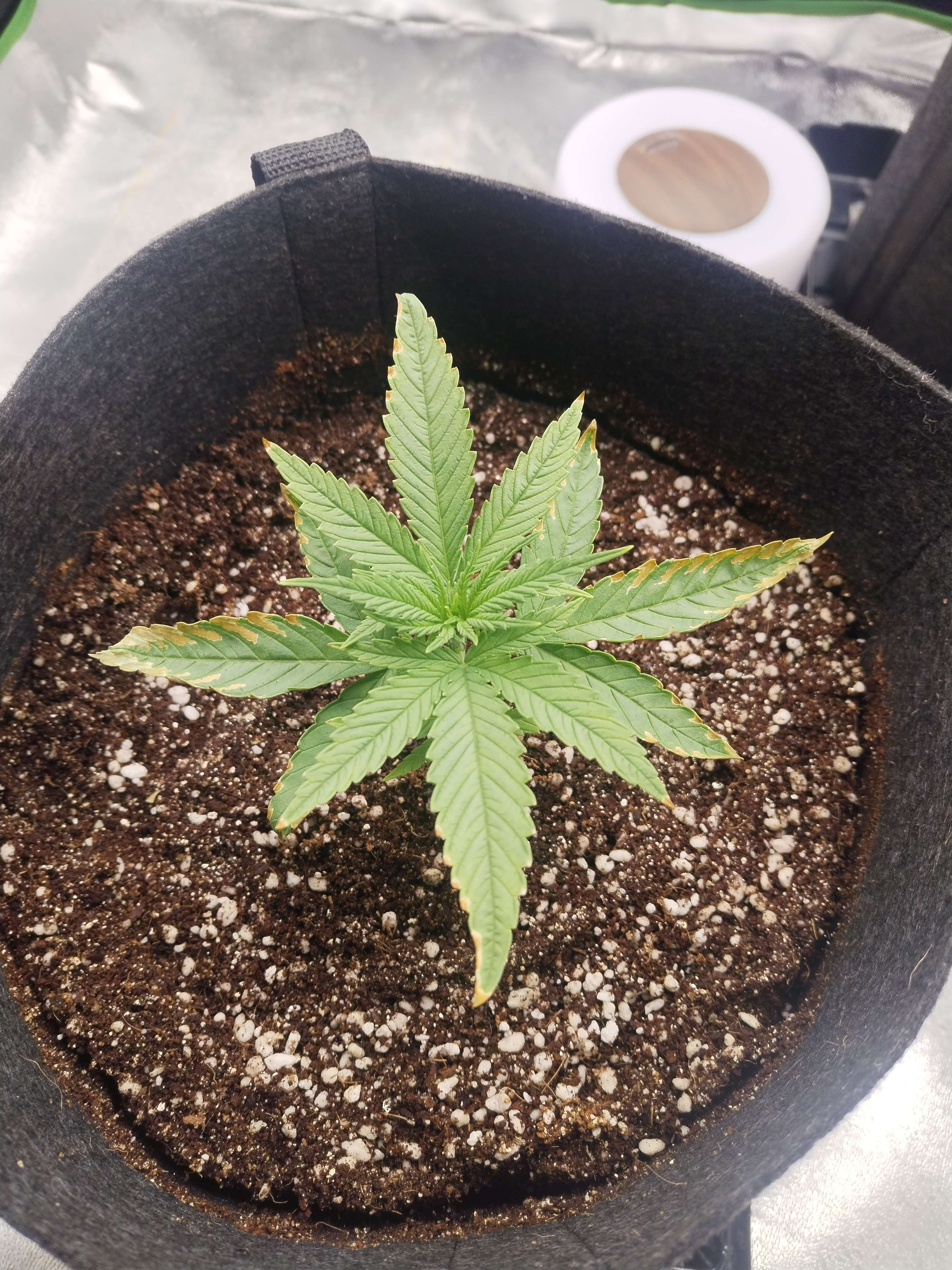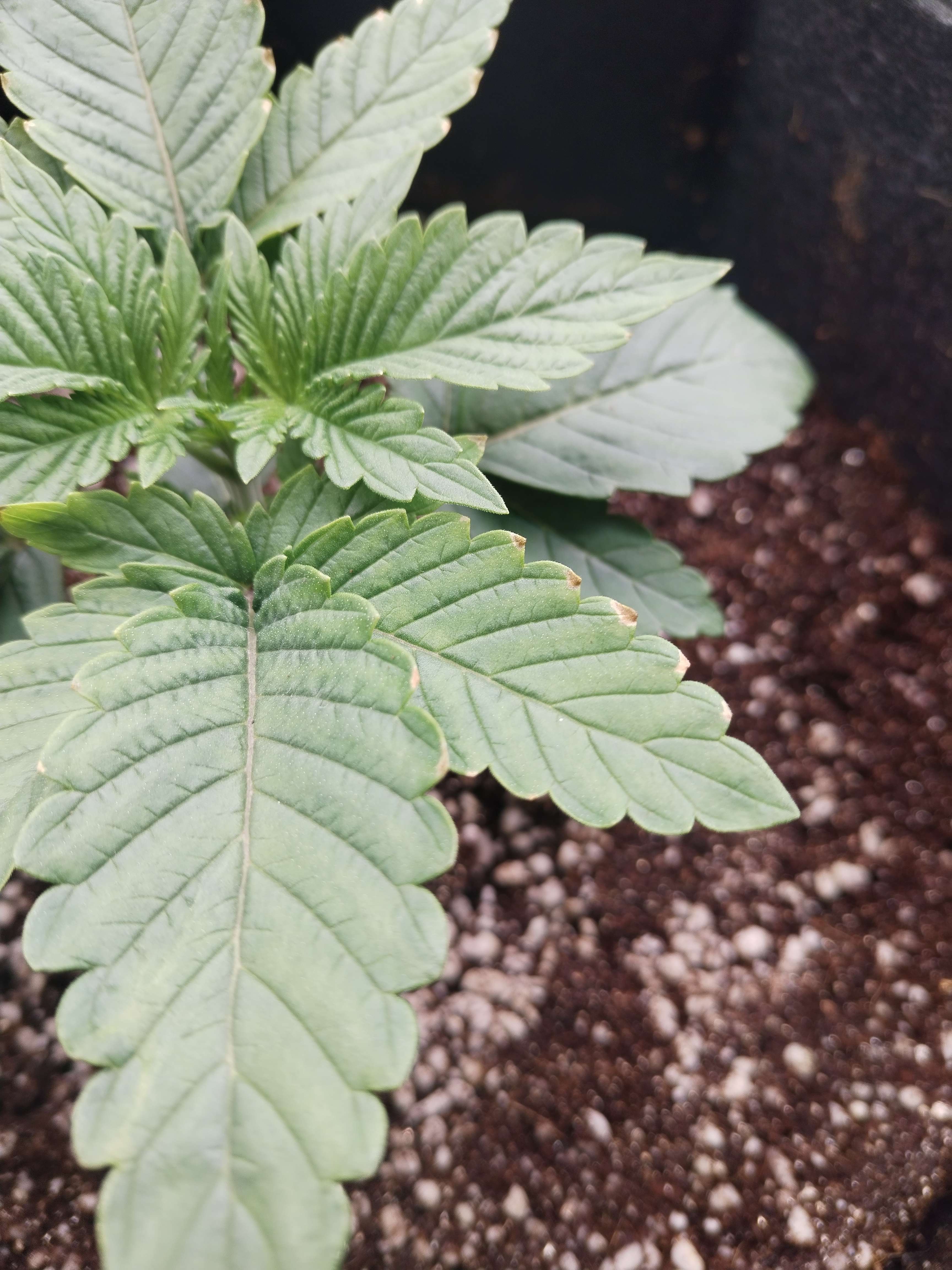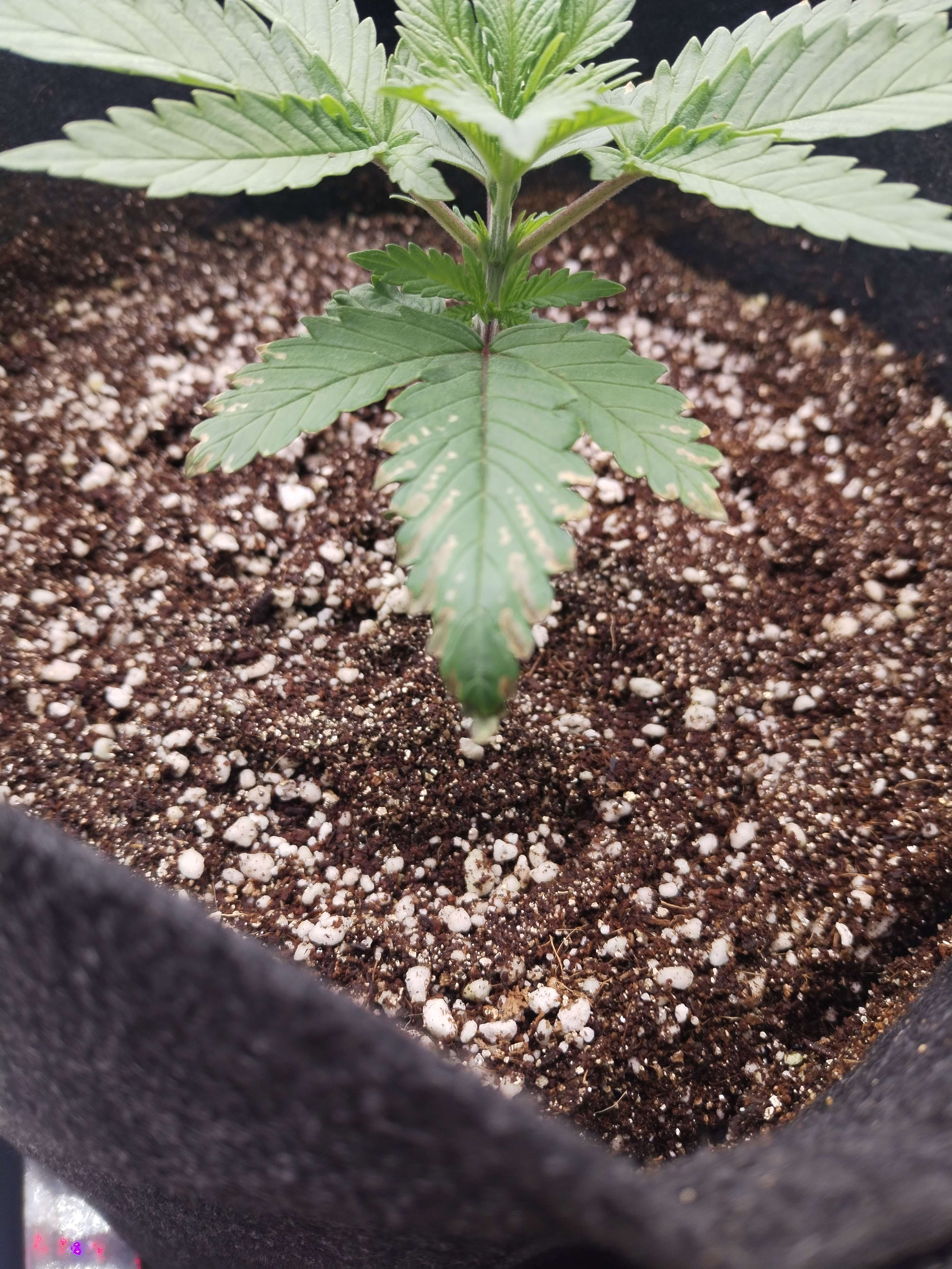 Спасибо трихомычу за совет с калмагом, только все равно пришлось импровизировать так как калмаг до сих пор где то чилит в дороге, в общем стабилизировал буфер тем что было в наличии а именно кокос АБ 1/4 от таблицы добавил power roots 1мл/л компот 470ppm 5.8ph замес на водопроводной был отстоянной 220ppm, и аккуратно сначала 100мл и в течении суток до 0.5л потихоньку добавлял общий объем полива вышел где то 1л. Растишки живые и я несказанно рад этому. По состоянию на сегодняшний день вырос ещё один этаж, листья жженые пока не отрезал, боюсь опять обидеть растишек