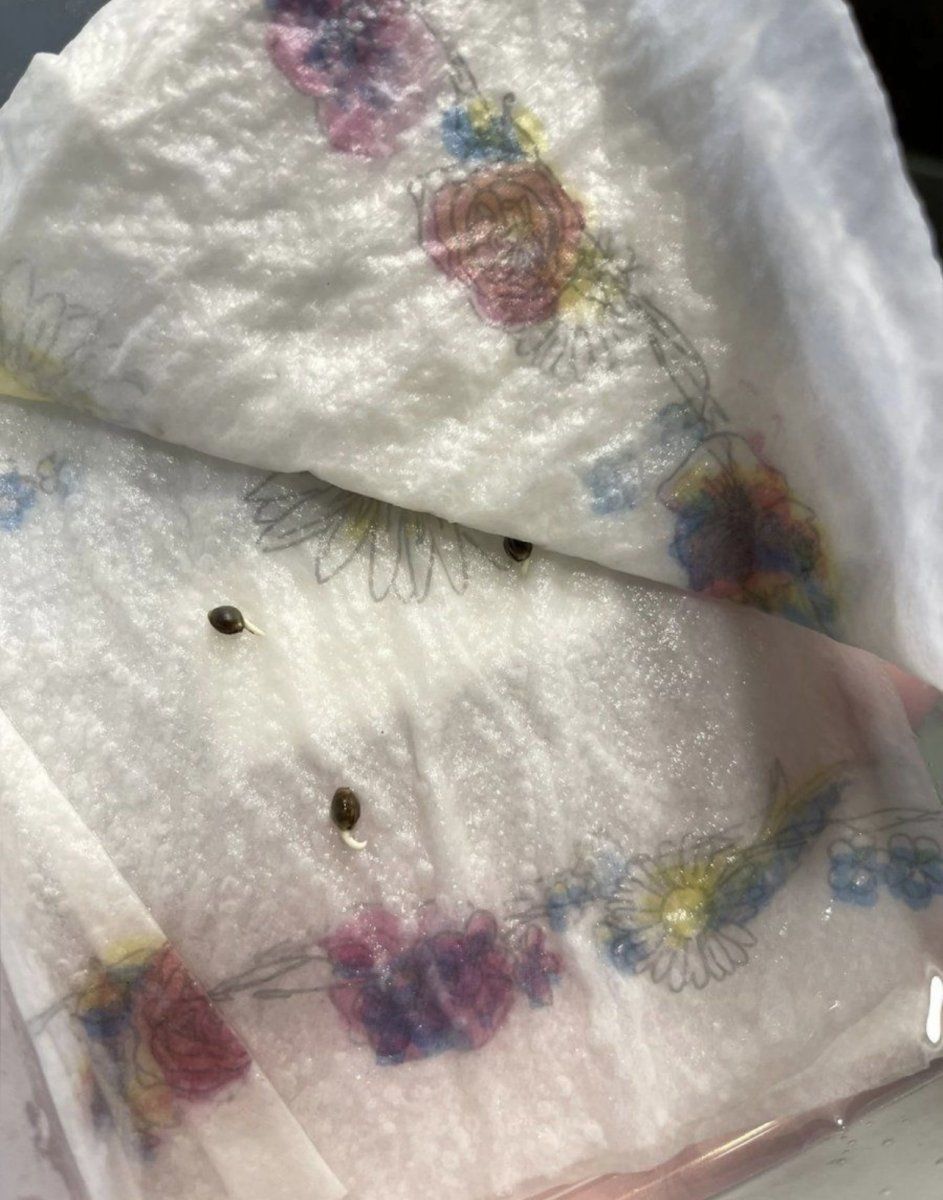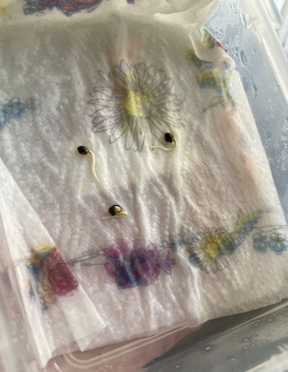 Далее перемещены в герметичный контейнер под салфетку, куда вылила рюмку с водой , в которой они размачивались . Через сутки вылез хвост , через 2- отросли приличные писюны