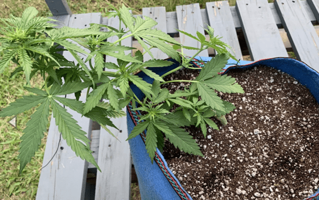 На четвертой неделе кусты существенно прибавили зеленой массы, активно развиваясь в горизонтальной плоскости. В конце неделе на одном из кустов уже начали формироваться завязи на центральной макушке и в узлах роста. Появились первые пестики. Кусты выглядели бодрыми и здоровыми. На следующей неделе они должны были перейти в полноценное цветение. Погода была хорошая. Подкормка вносилась аналогичная прежней.