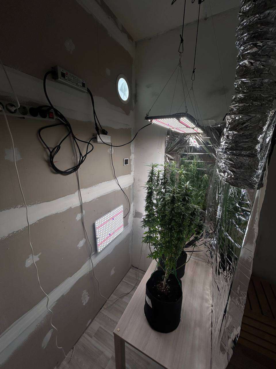 немного доделал бокс, докупил 2 борда по 120 вт на 301b диодах, свою же лампу поставил на досве, полностью убрал все запахи от кустов. Переживаю что мало кормлю, переживаю немного,а так в целом всё очень даже не плохо,срезаю большие листья для света.