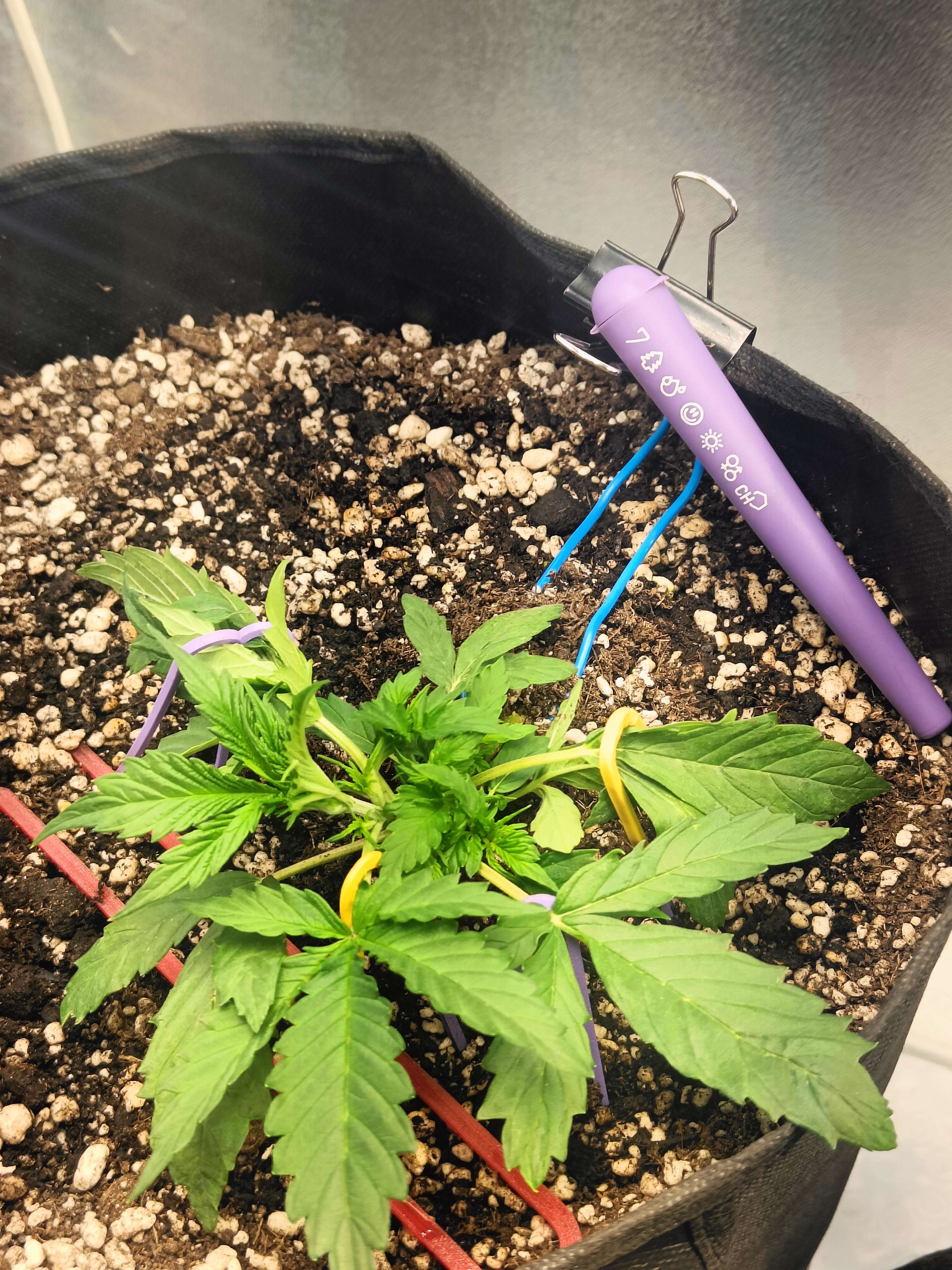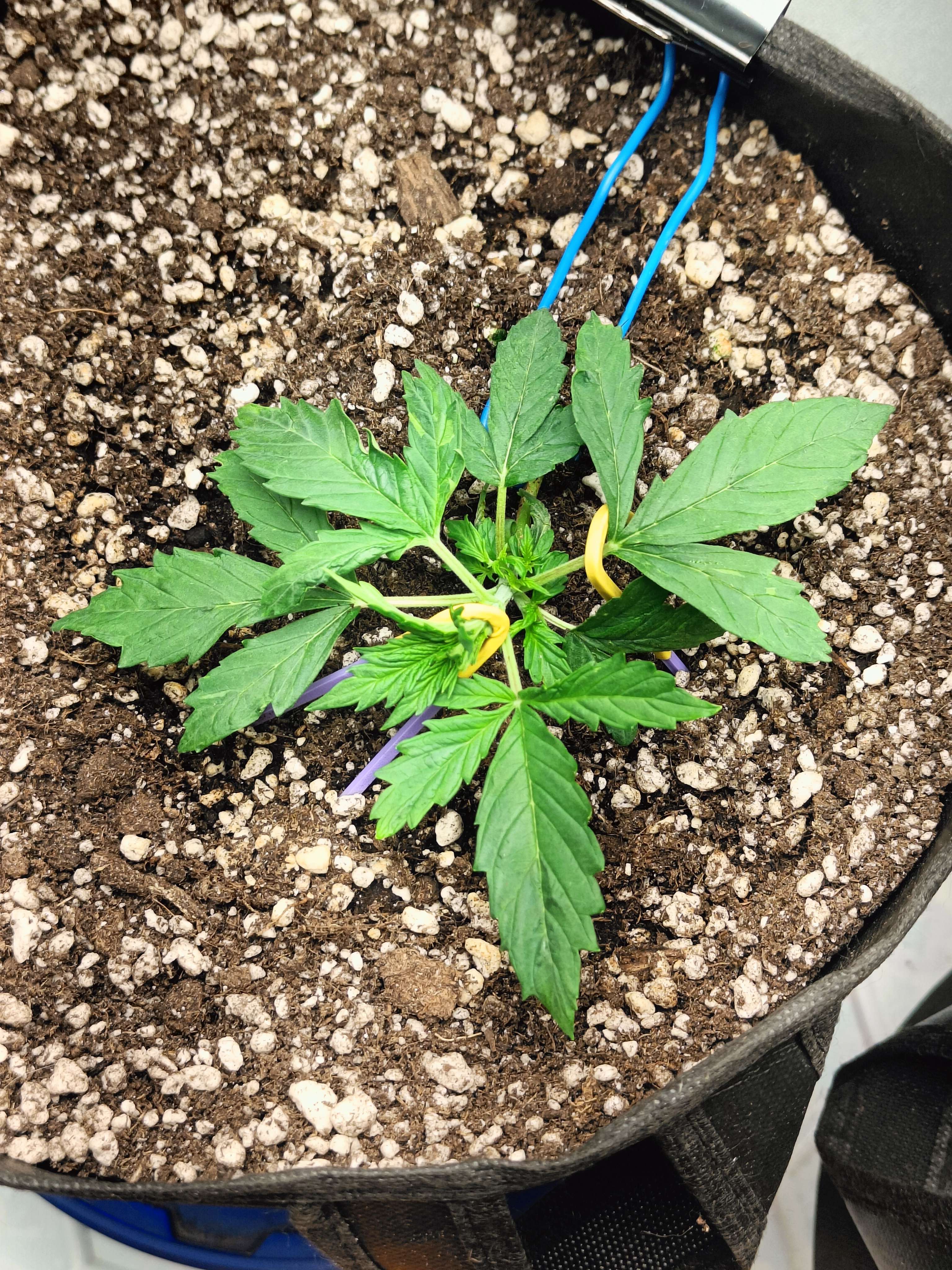 18 День (3.08) Утро Рост 11 см (2 ряд)/13 см(3 ряд)/11см (4 ряд )/1-2 см (5 ряд),начал потихоньку делать LST, градусов 10-15, закрепив проволокой в противоположном направлении