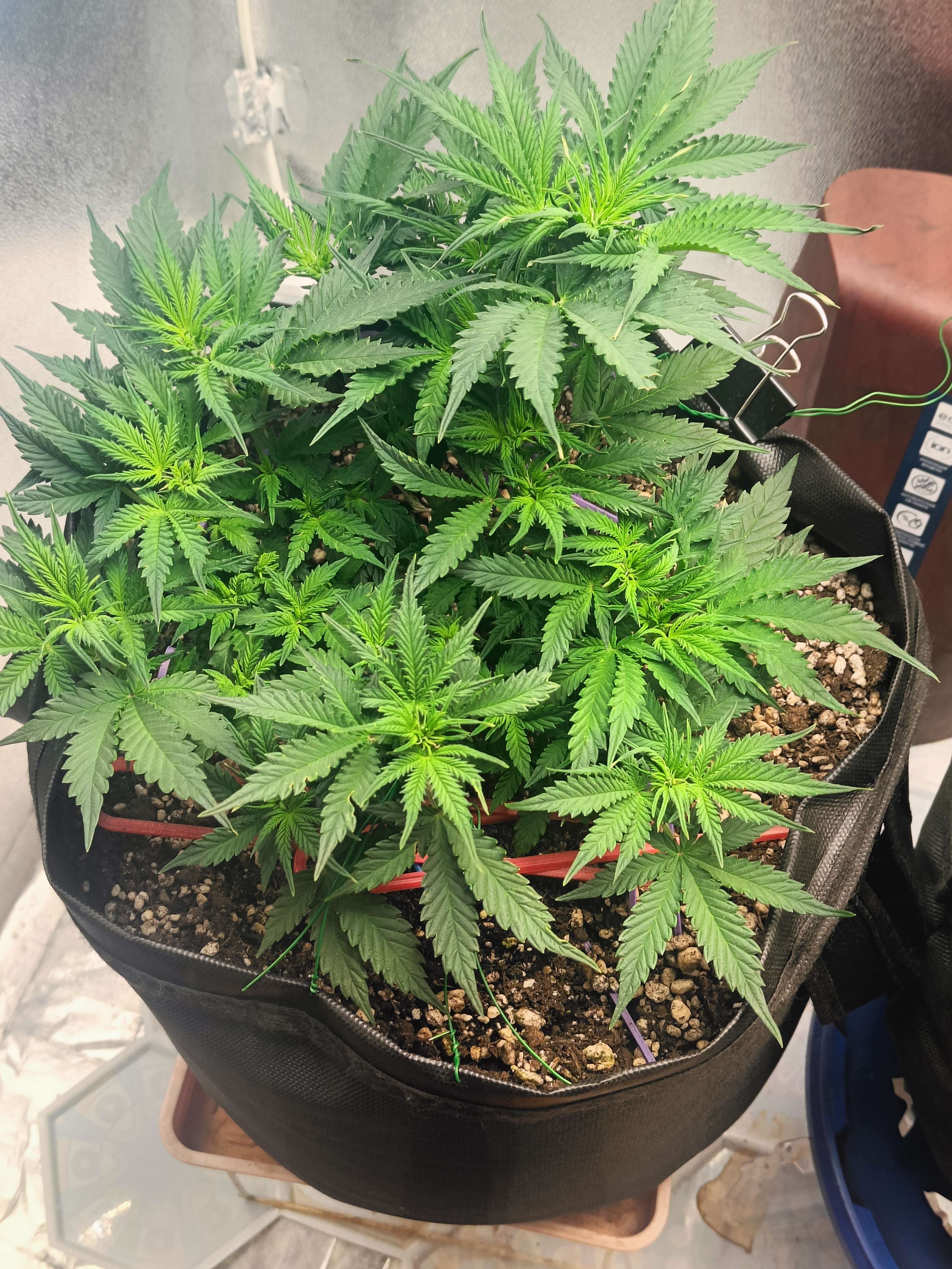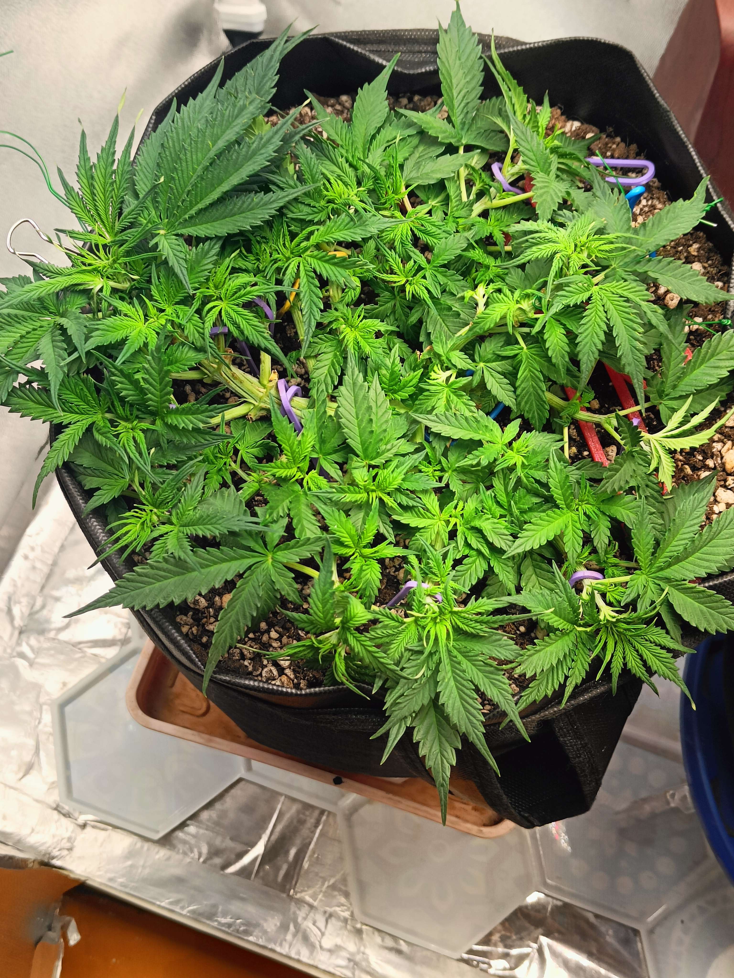 40 День (25.08) Утро ,полив 1.5л 6.54ph + Pro Organic Bloom 2 мл/л + Fulvic 2 мл/л + Pro Bloom 0.2 мл/л,отпустил почти все растяжки пускай вверх растет уже)