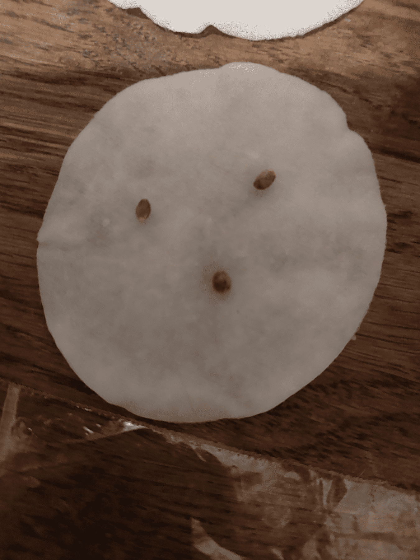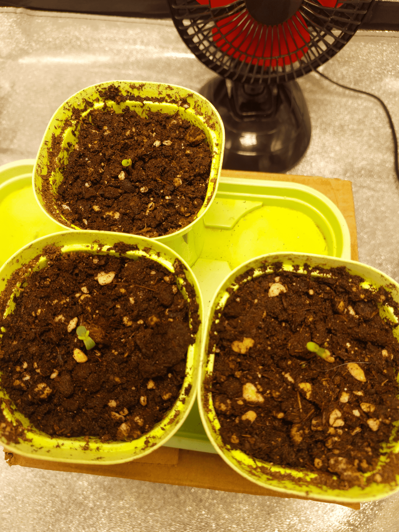 Закинул три семки между влажных ватных дисков, в зип-пакет и в ящик стола. Примерно через 1, 5 суток они проросли, только у одного кончик был черный - думал все. Все три посадил в стаканчики для рассады: грунт для роз (35%), грунт для цитрусов (35%), перлит (30%). Проросли все - будем наблюдать дальше
