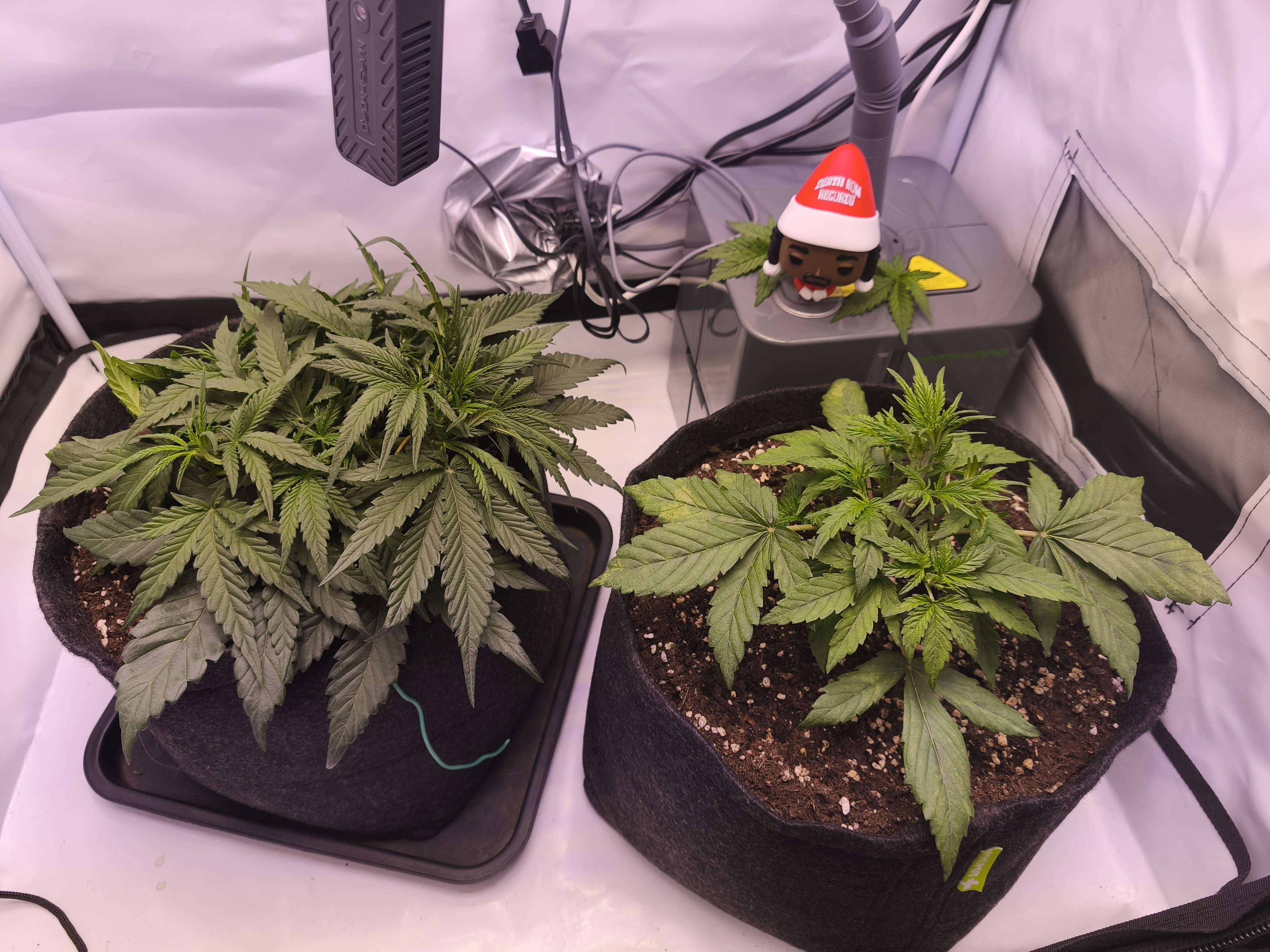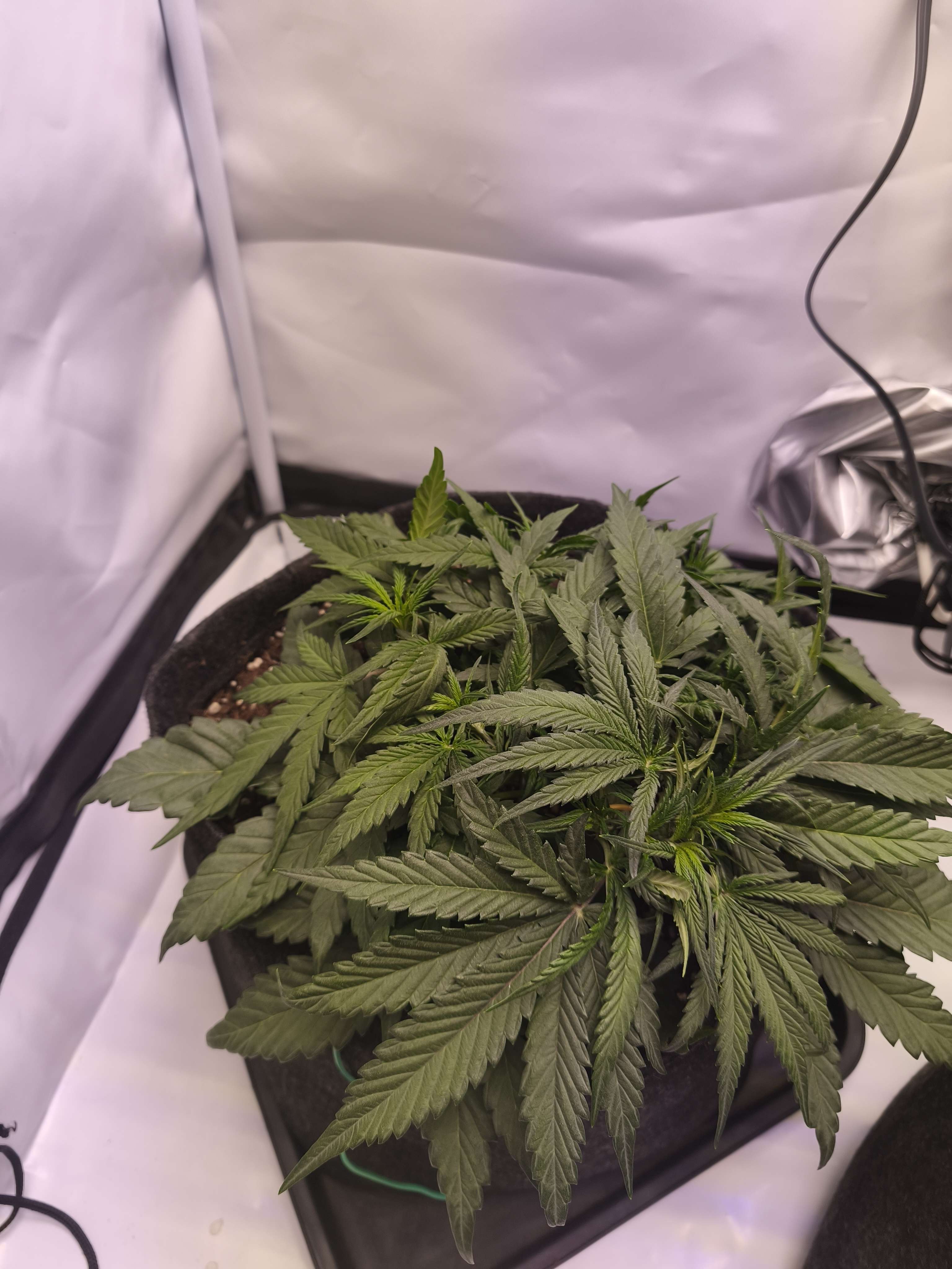 Durban ползет по земле, немного конечно вырос (фото ниже), но я ожидал более бурного подъема. Не цветем, продолжается вега, стигмы показала, на этом всё. За эти дни удалил 4 листа, они были лишними, стрэсса не почувствовала от слова совсем. Полив раз в 2 суток двумя (2) литрами воды, с комплексом BioBizz (вега) на 100% дозировки (как изначально и рассчитывал ехать). LST применял за последние дни 2 раза, открывая побеги, прижимая листы. 27к lux (+ досвет Blue 30) лампа работает на 90%. Впереди 5 (пятая