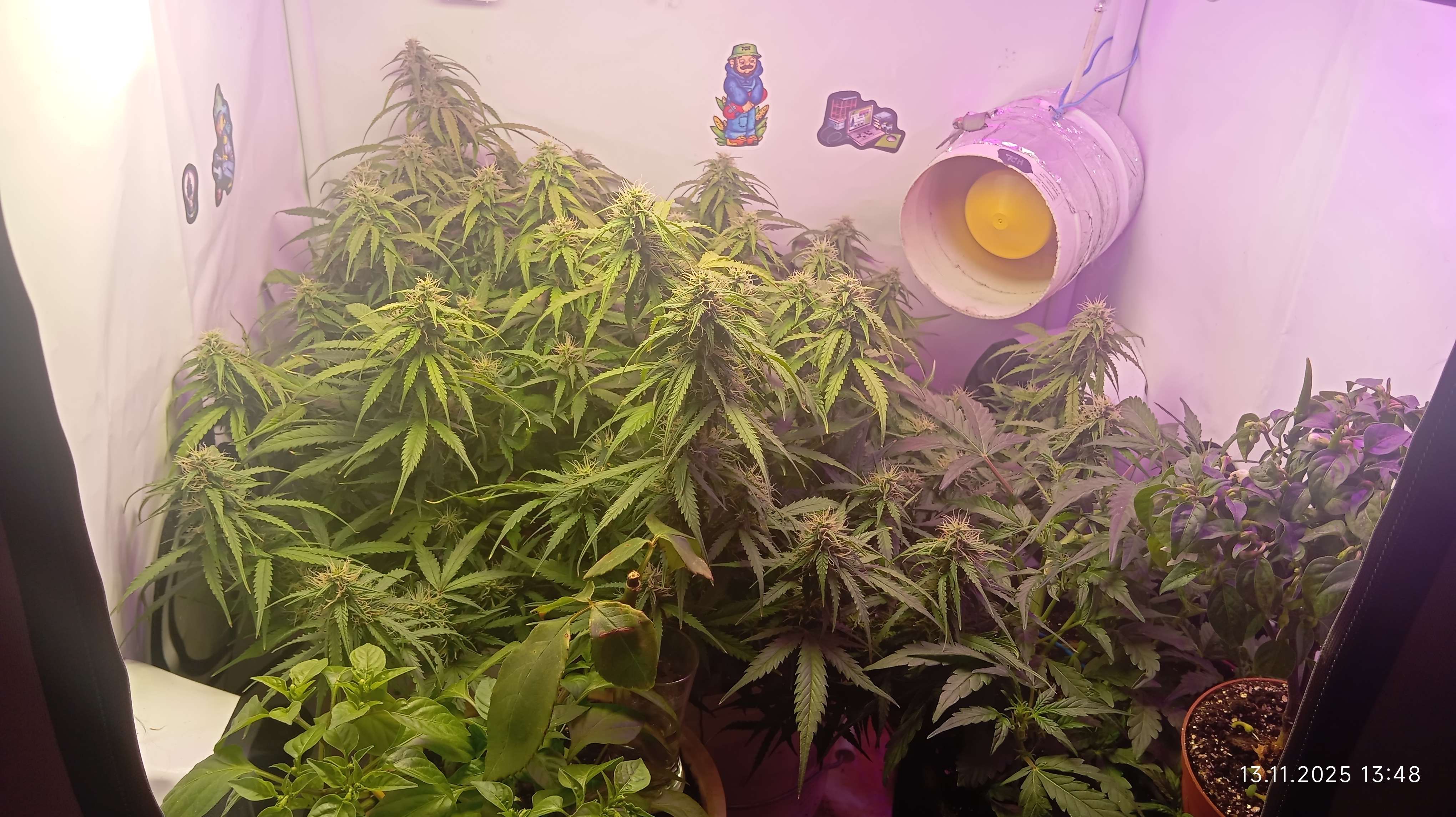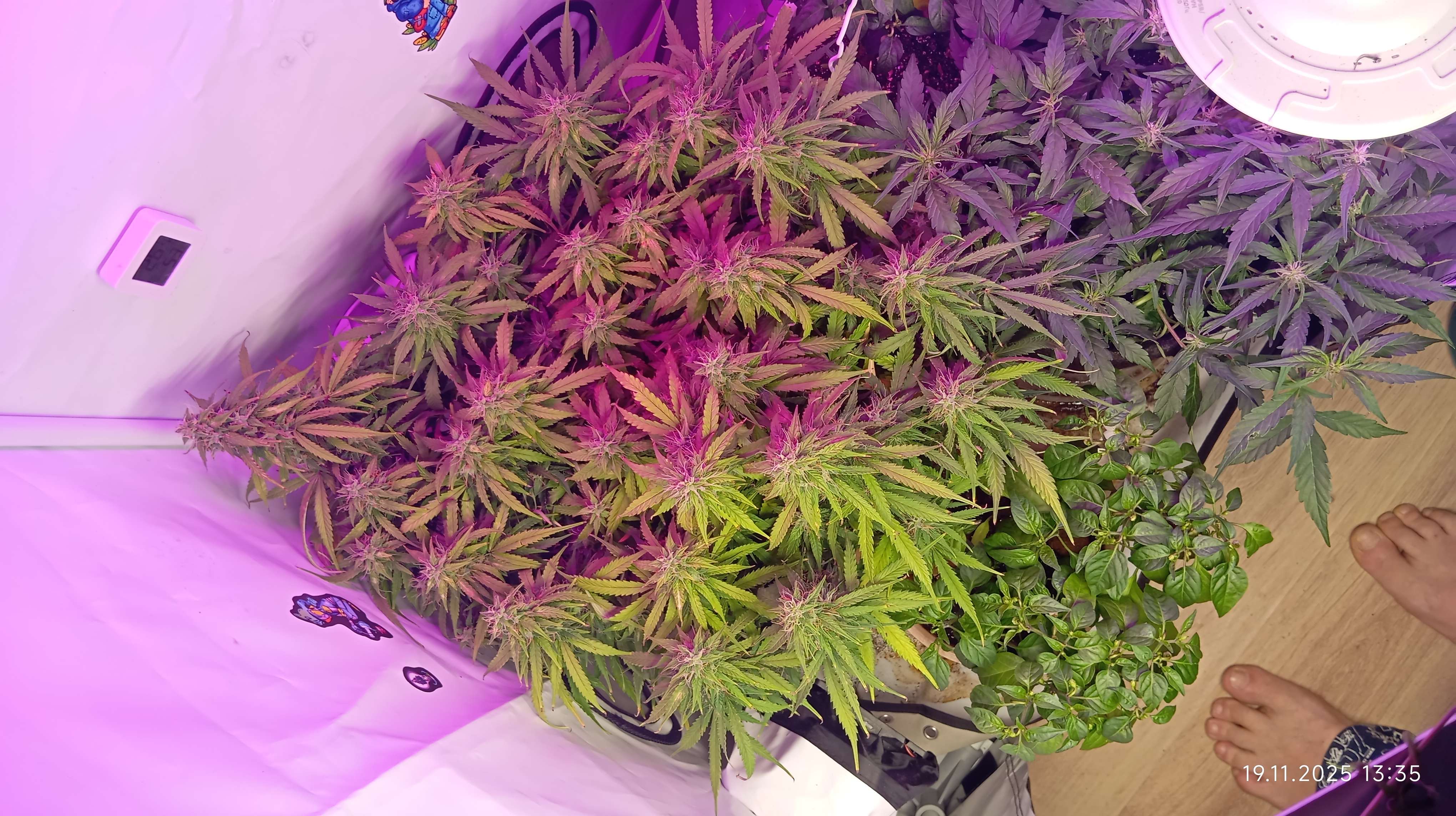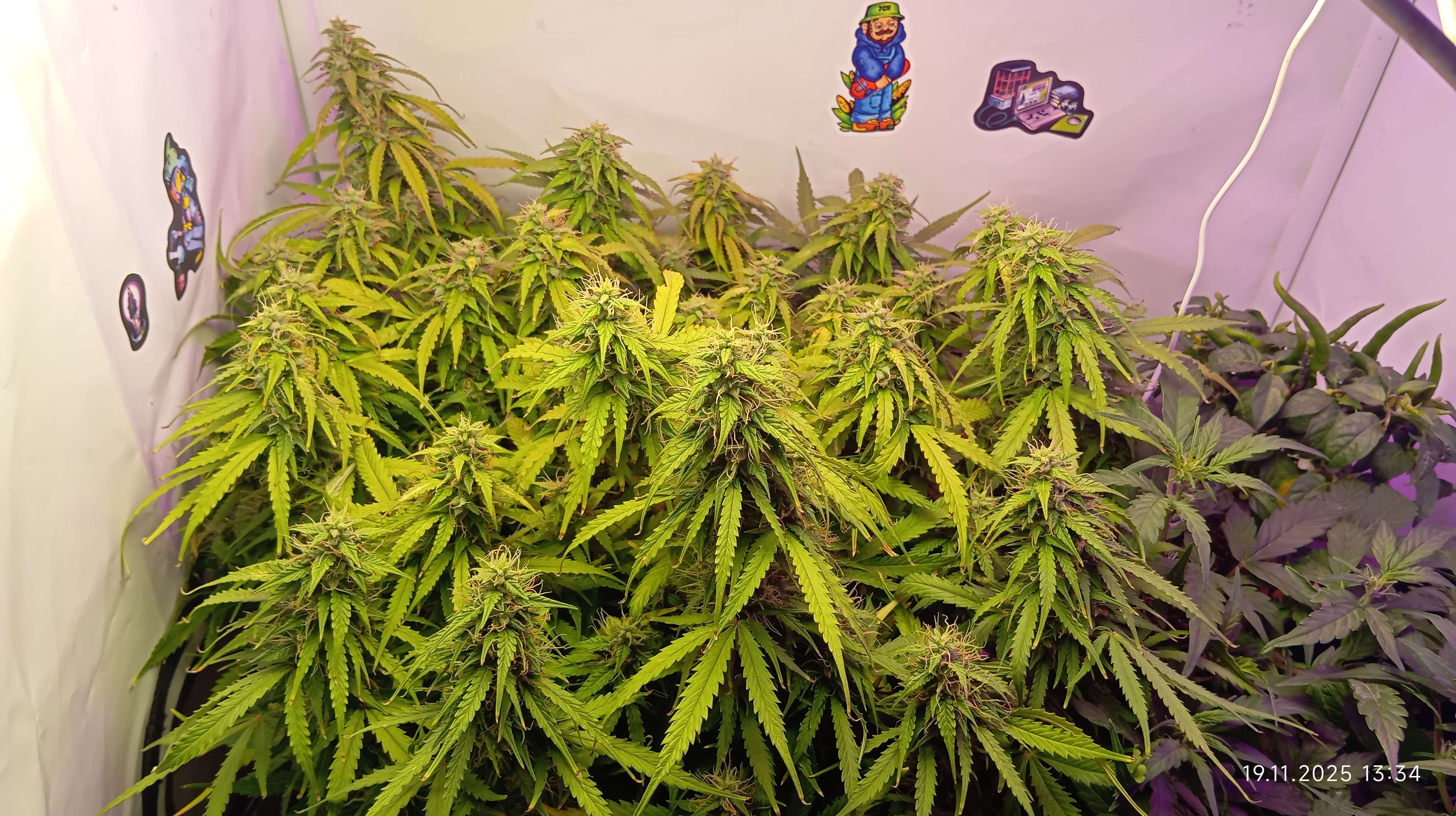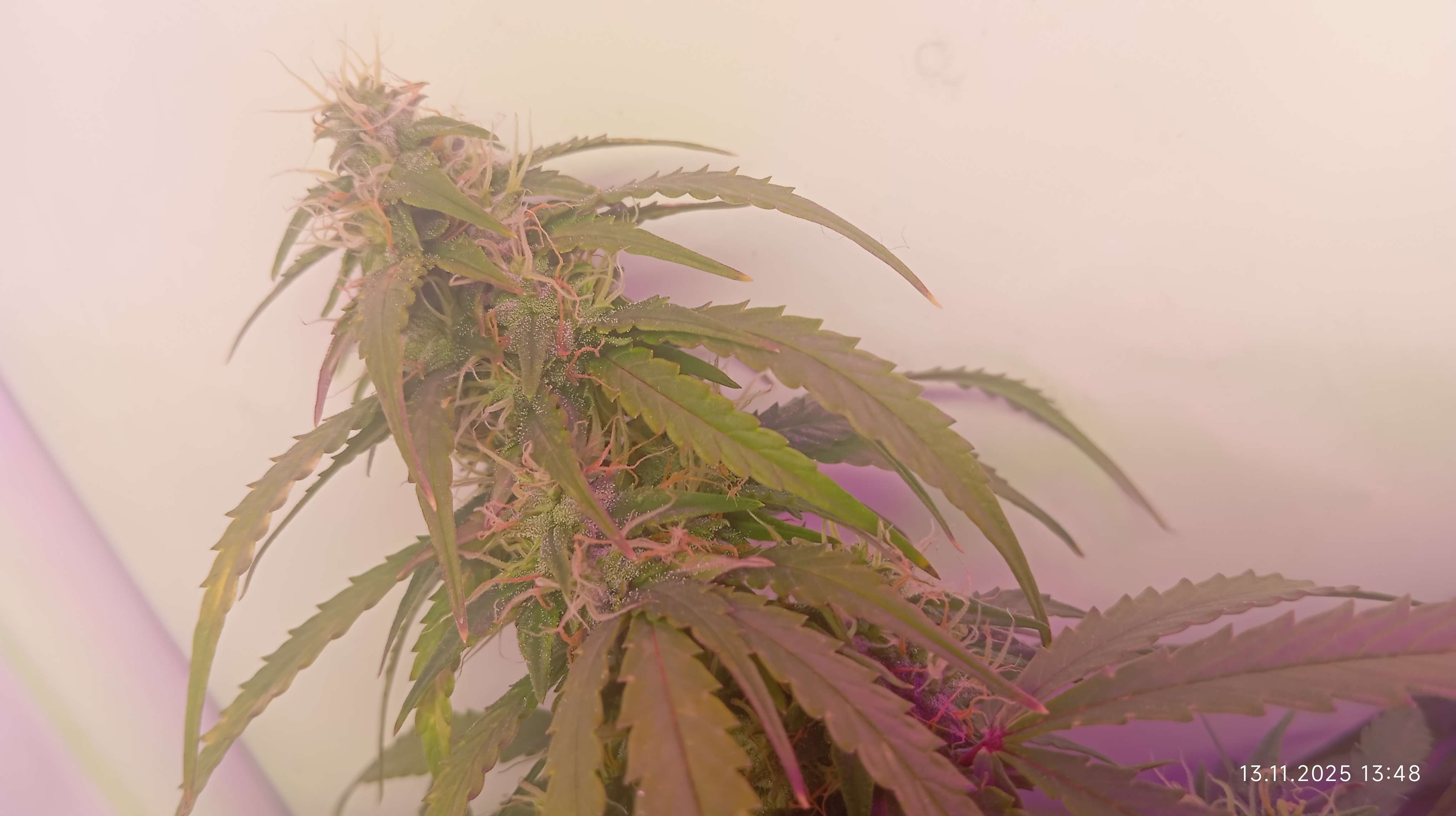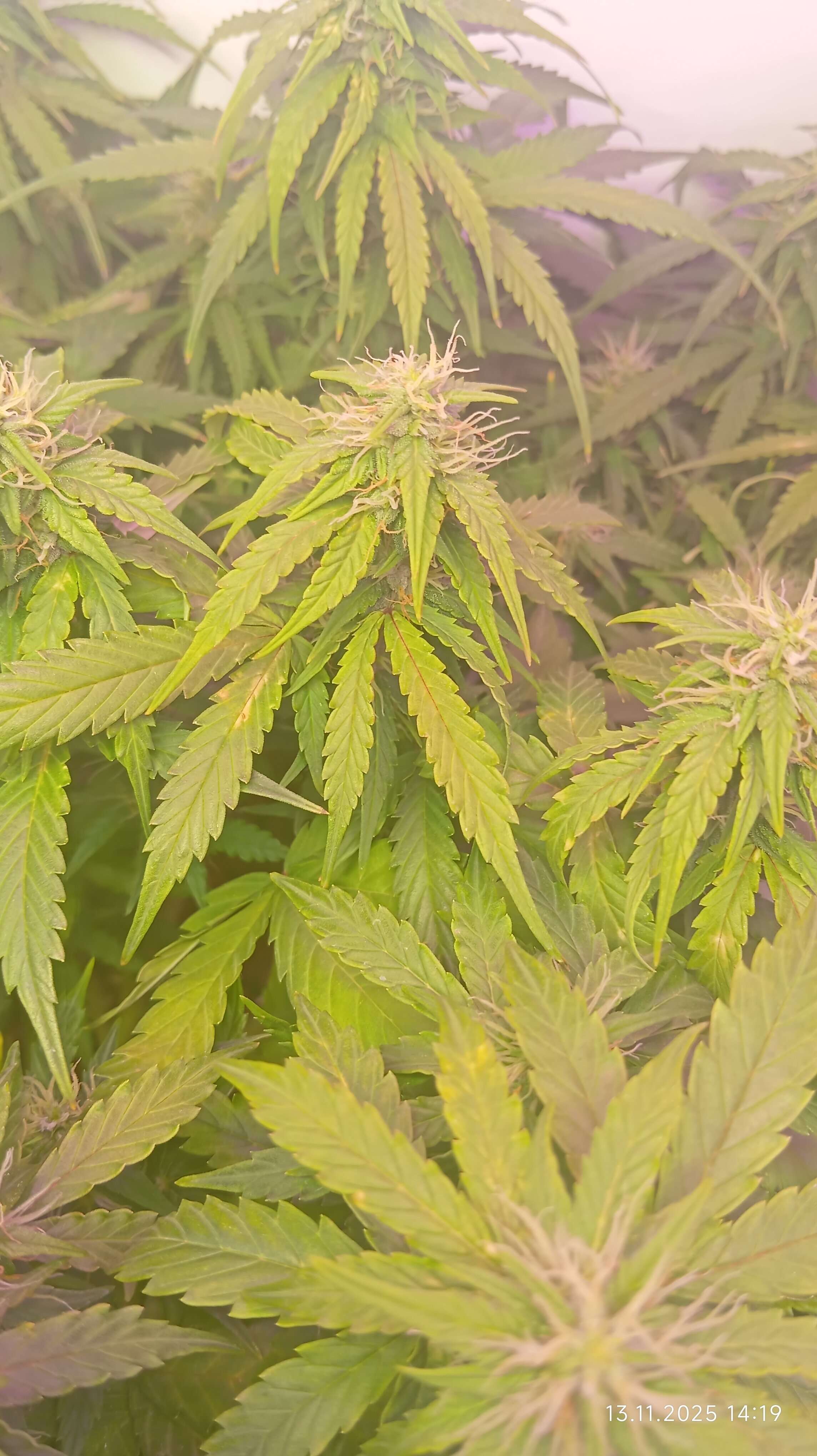 Я темно зеленый цвет листьев видел у афганки вот там действительно сорт такой, а обычно если темно зеленая листва это значит азота много. Вноси удобры бро особенно фосфор видно прожилки фиолетовые становятся это значит растиха фосфор выкачивает. Ну и сами шишки еще хлипкие так что во первых время им нужно, во вторых фосфор калий... Главное не торопись, чередуй воду с компотом и набухнут шишки и результат будет мощный главное в конце всё не заруинить как многие делают. И пробу снимать не вздумай, лучше листву собирай и пролечивай и так пробу листвы снимай но шишки не трогай им еще надо созреть ато толку с них нет. А листва так и так безпонтовая ее не жалко хотя если не куришь то напрет тебя нормально