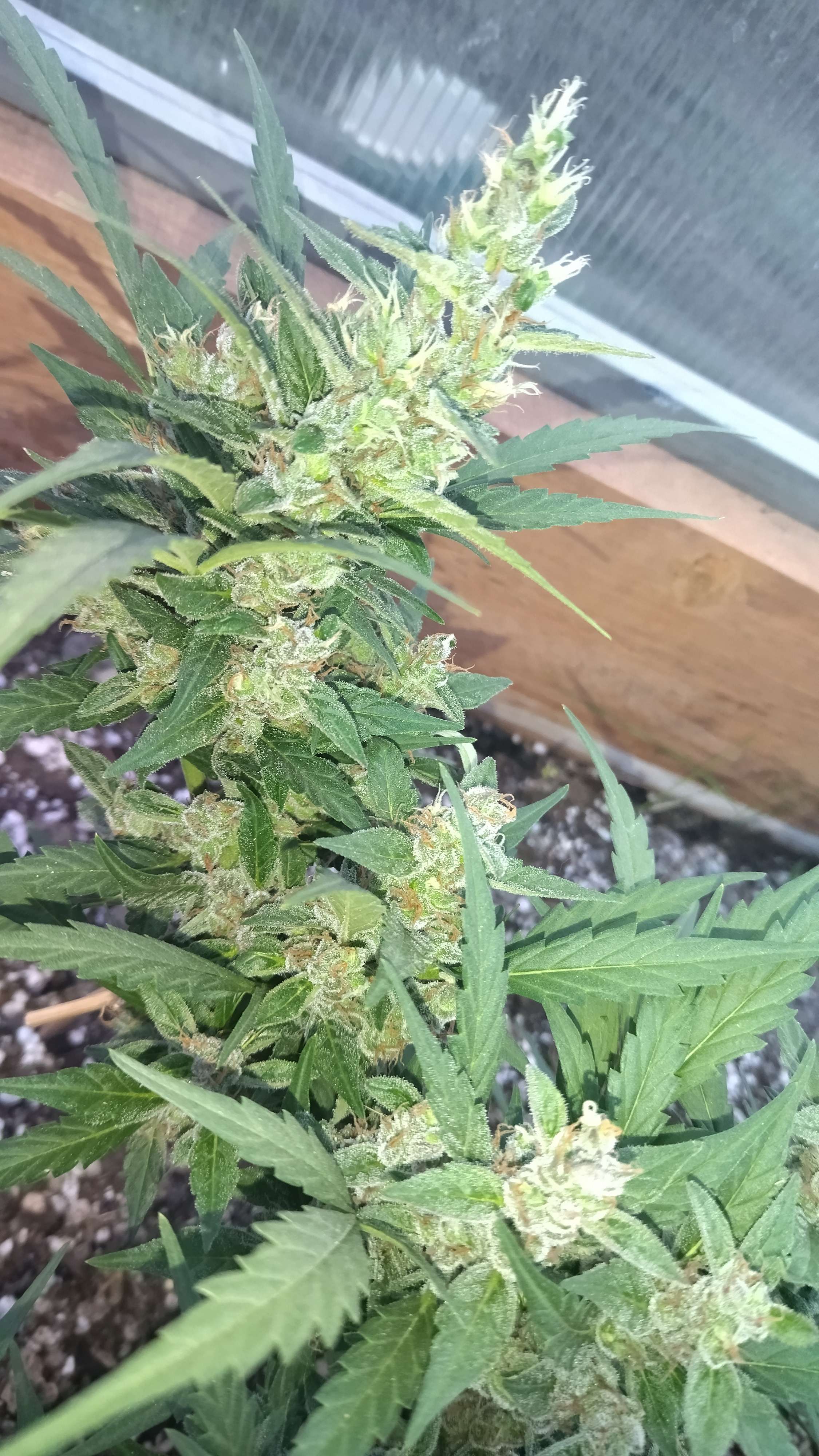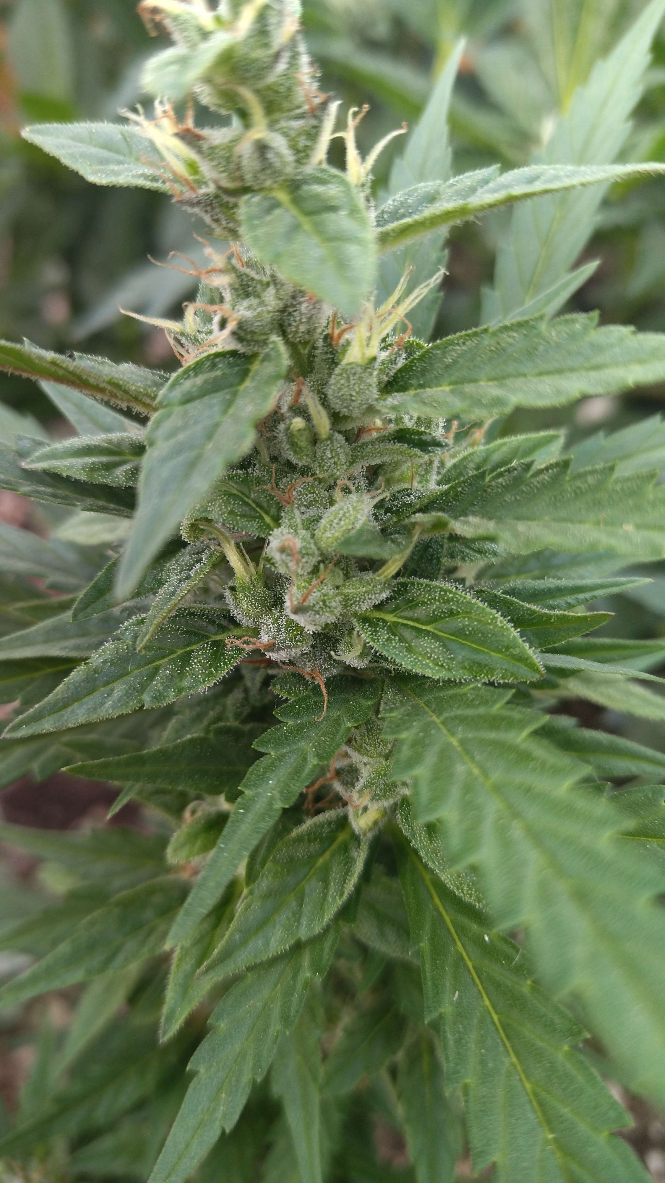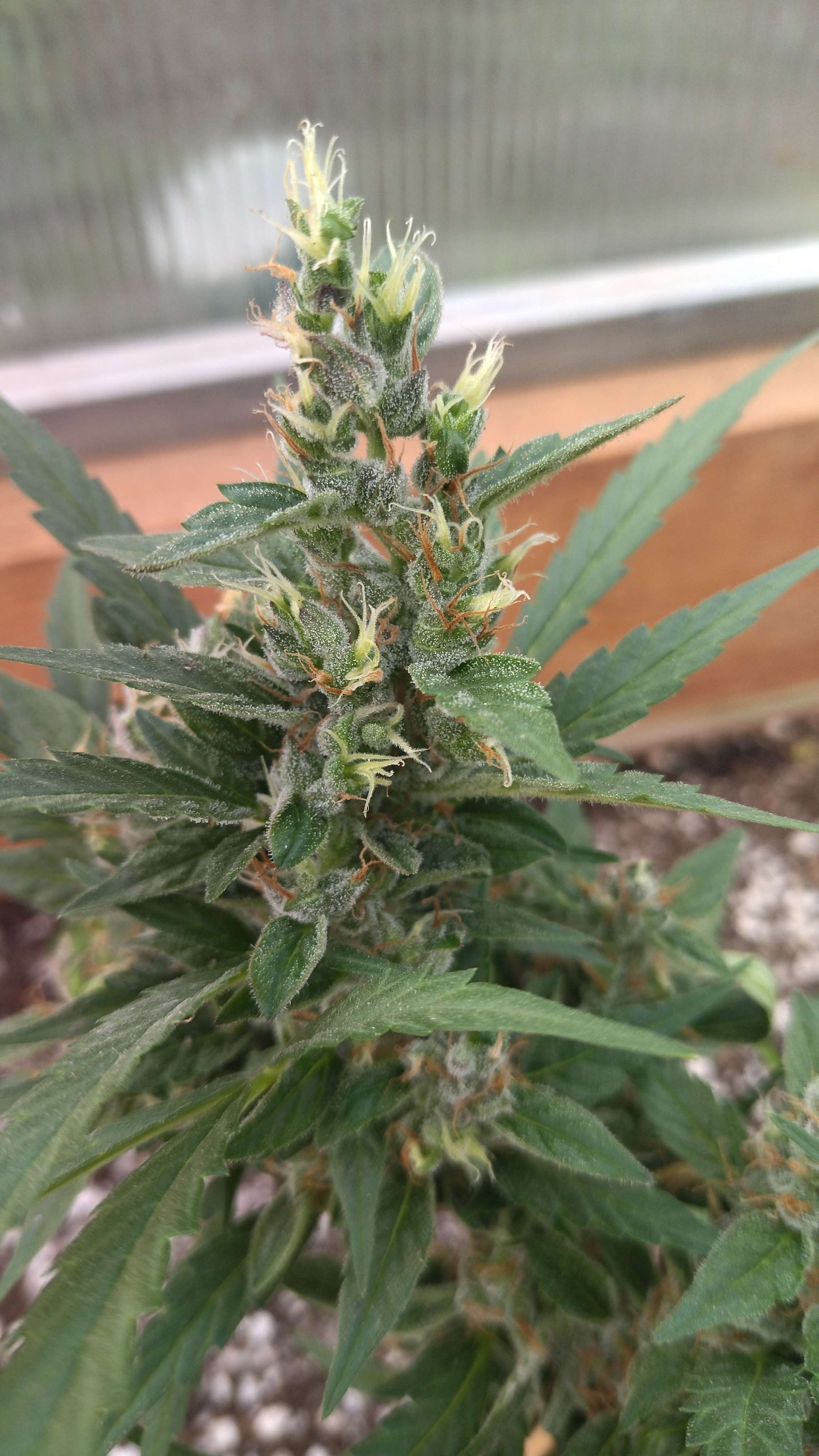 Интересно будет оценить воздействие, сравнить с фотопериодной коноплей. Так, что на днях старшая Горилла будет срублена. Расут слишком плотно шишки, междоузлия короткие, велик риск возникновения плесени. Прохладно ночами, влажность. А в теплице в лёгкую, воздухообмен хуже.