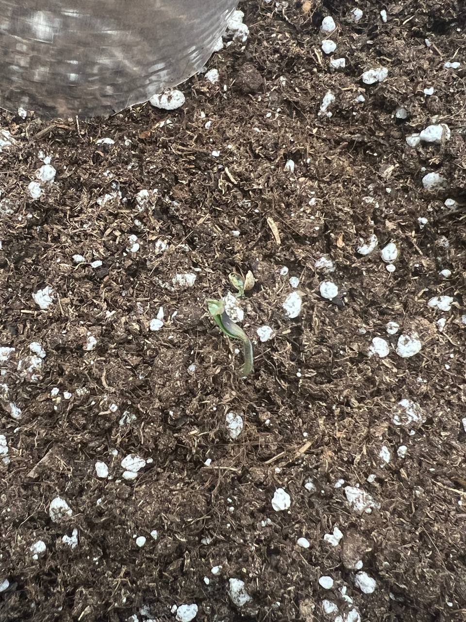 ) и неудач!) И так, 22.01 - всход, 23.01 - ее вот так кривит, ну думаю, бог с ним, вытянется, выпрямится, куда денется) В этот же день, но уже вечером вижу подобную картину!)))(фото 2). Думаю, ну ужас. что за инвалид, что я наделал, что происходит. Резко кидаю инфу в тг чат Семяныча, получаю лечебного пендаля от господина Люцифера (отдельная благодарность, после харва дам косяк за его здоровье и долголетие!). Растишку поднял, насыпал кучку, опустил лампу на 50 см от горшка, накрутил 50% на диммере, растишка оклемалась! на сегодняшний день, нам 5 дней от каски, со всеми косяками выглядим вот так!)