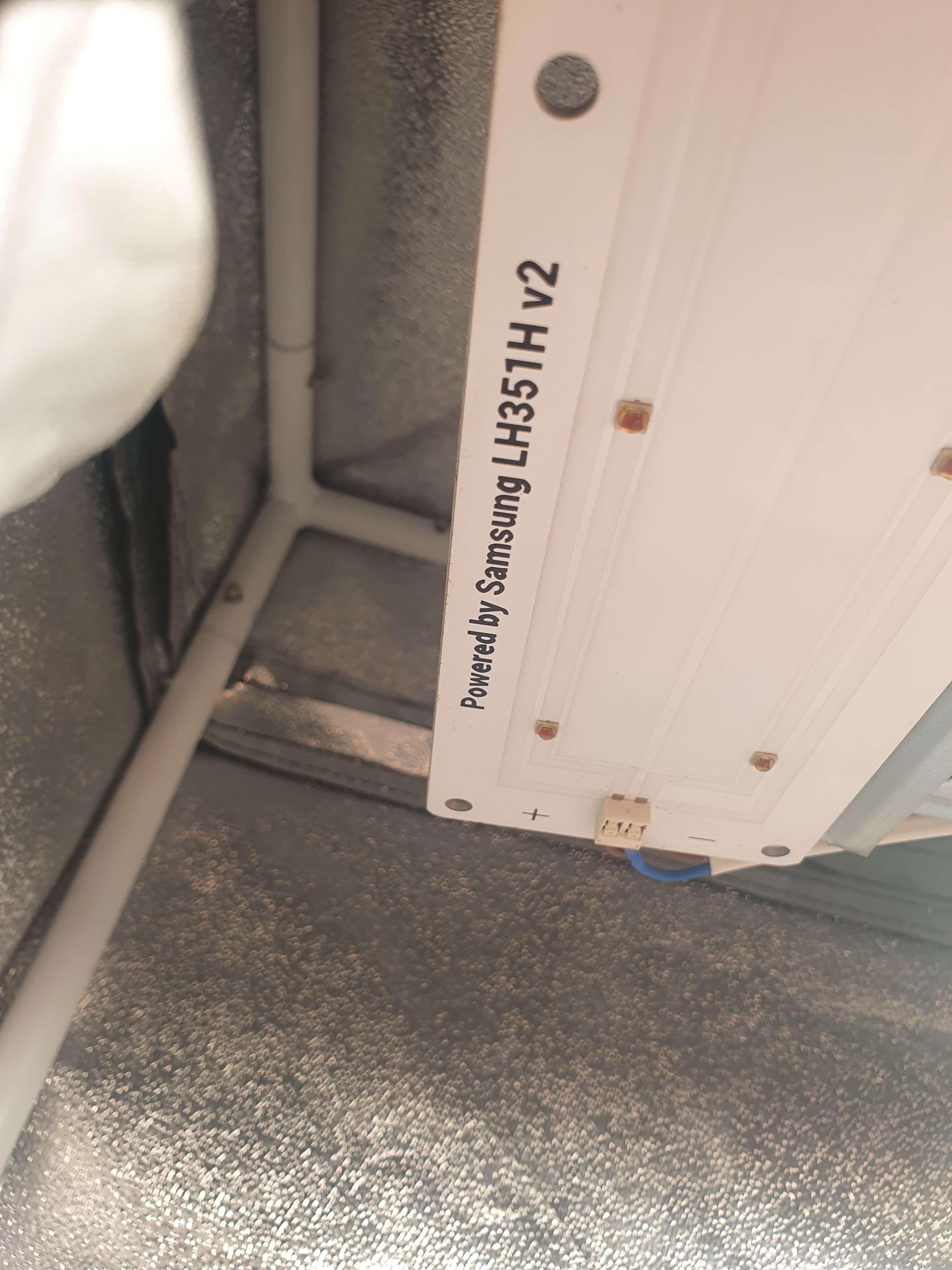 Квантумборд 3500К + 660nm (120Вт, диоды samsung lm301h) + 2 бустера 660nm (диоды samsung LH351H v2) по 15вт каждый, итого 150вт света, для 60х60 бокса в принципе достаточно (в итоге растишка переедет в бокс 80х80х160 со светом 390вт, но факстически с условием димирования светить будет 260вт).