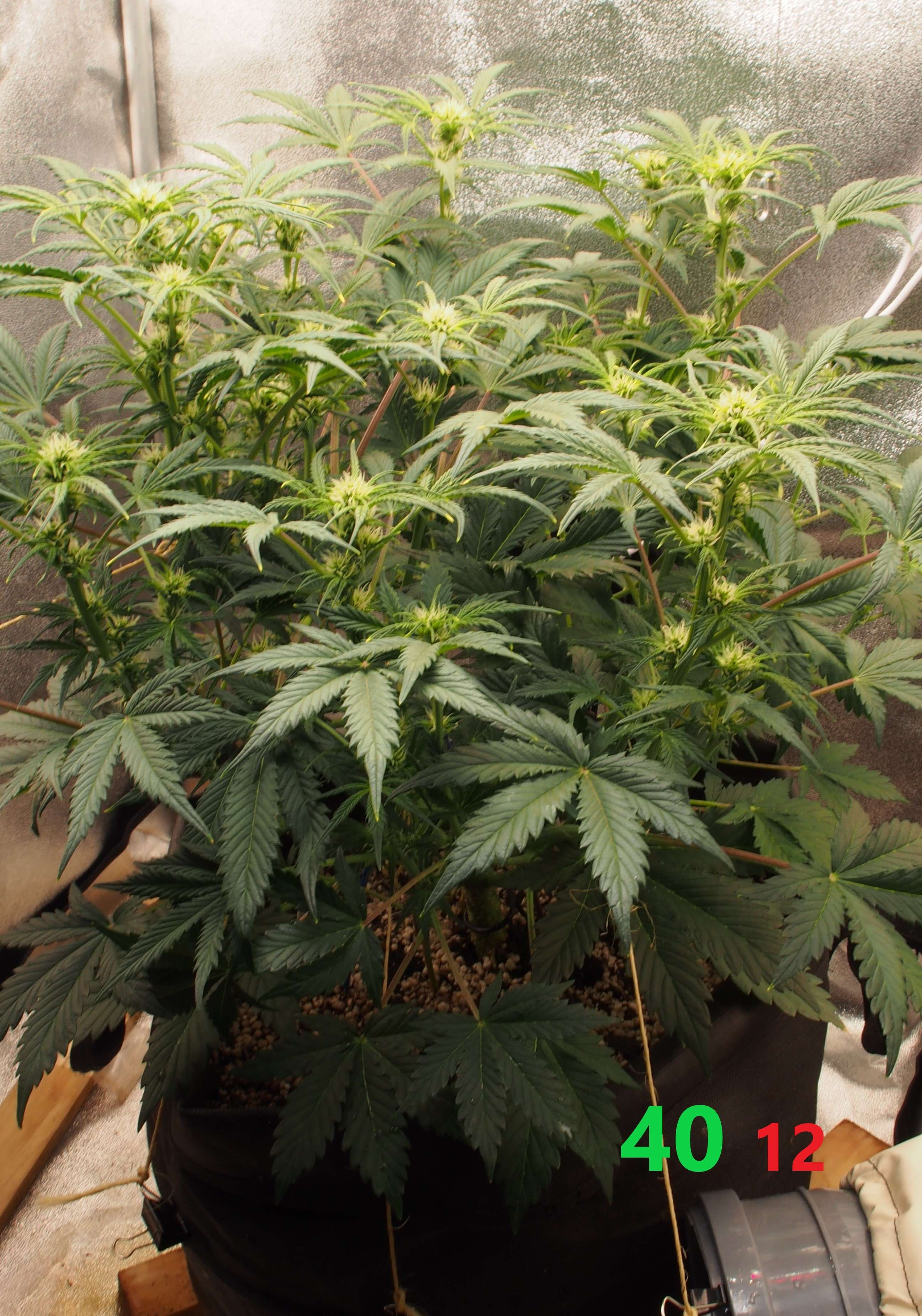 2-я неделя цвета. Растишка заметно выросла вверх - поэтому применяем только LST. Тянем главную колу вниз и стараемся создать несколько равных по уровню верхушек. Листьев много, но дефолиация минимальная - нет каких-то огромных лопухов, а резать кучу мелких листочков я не хочу.
