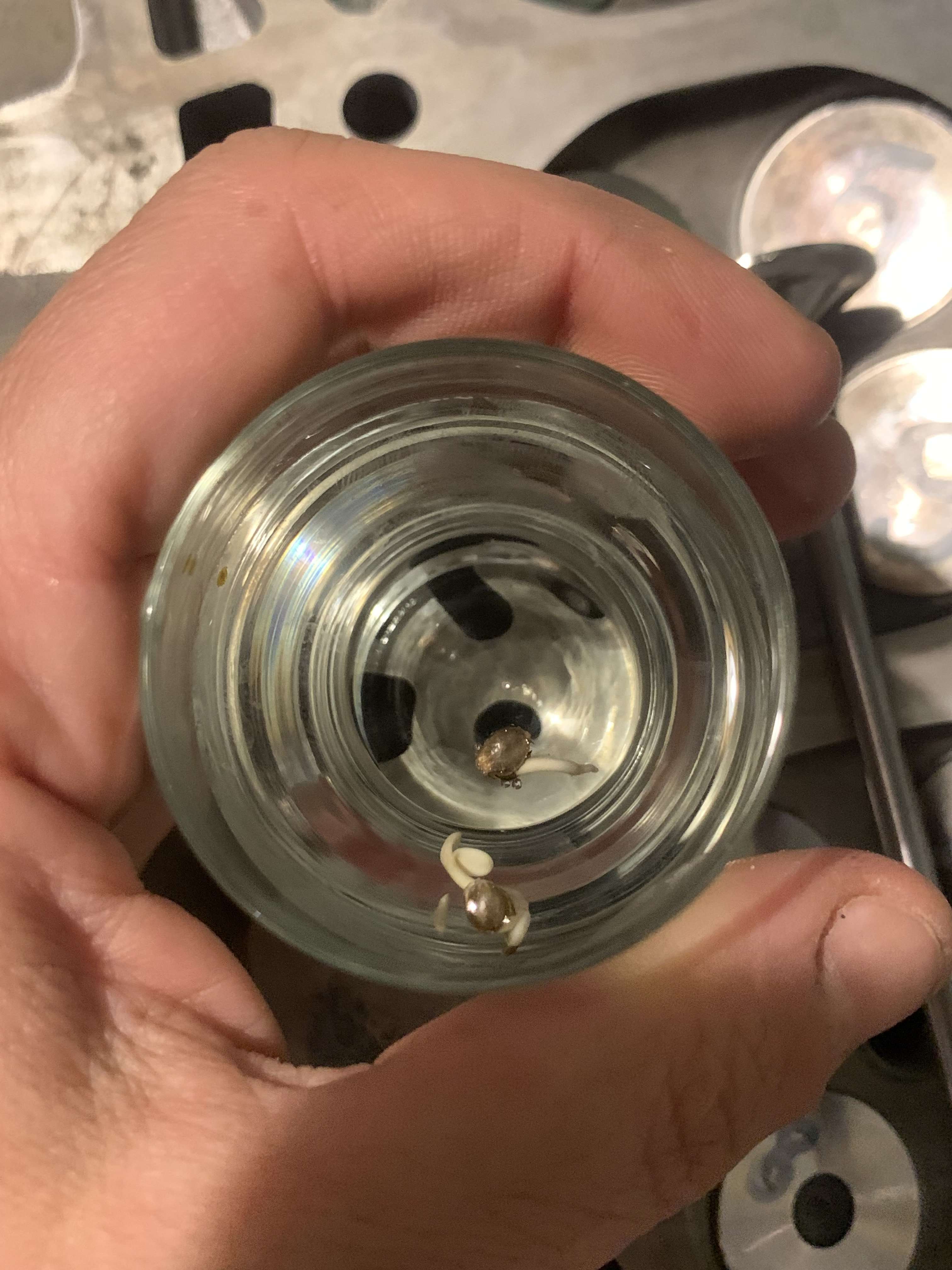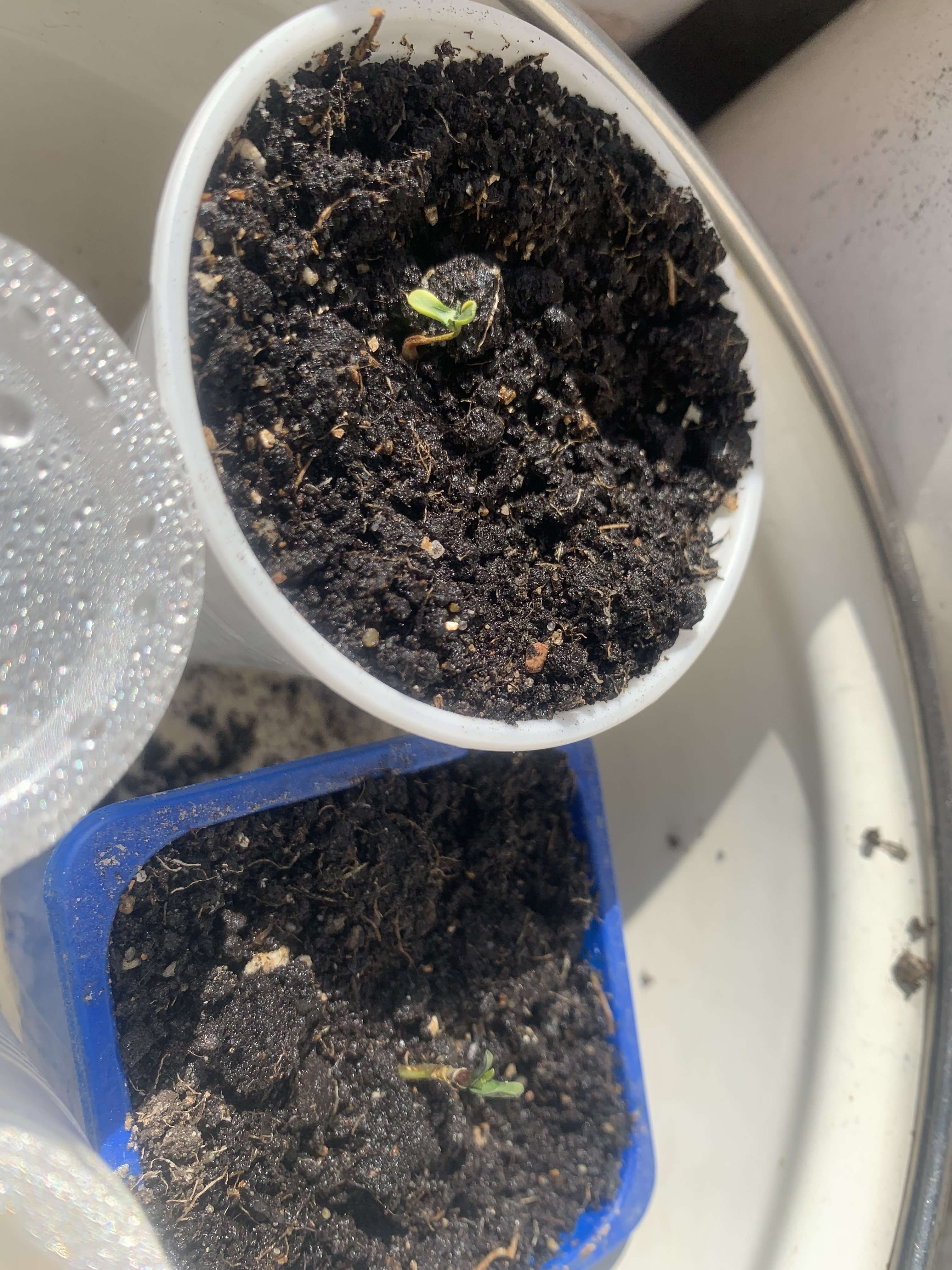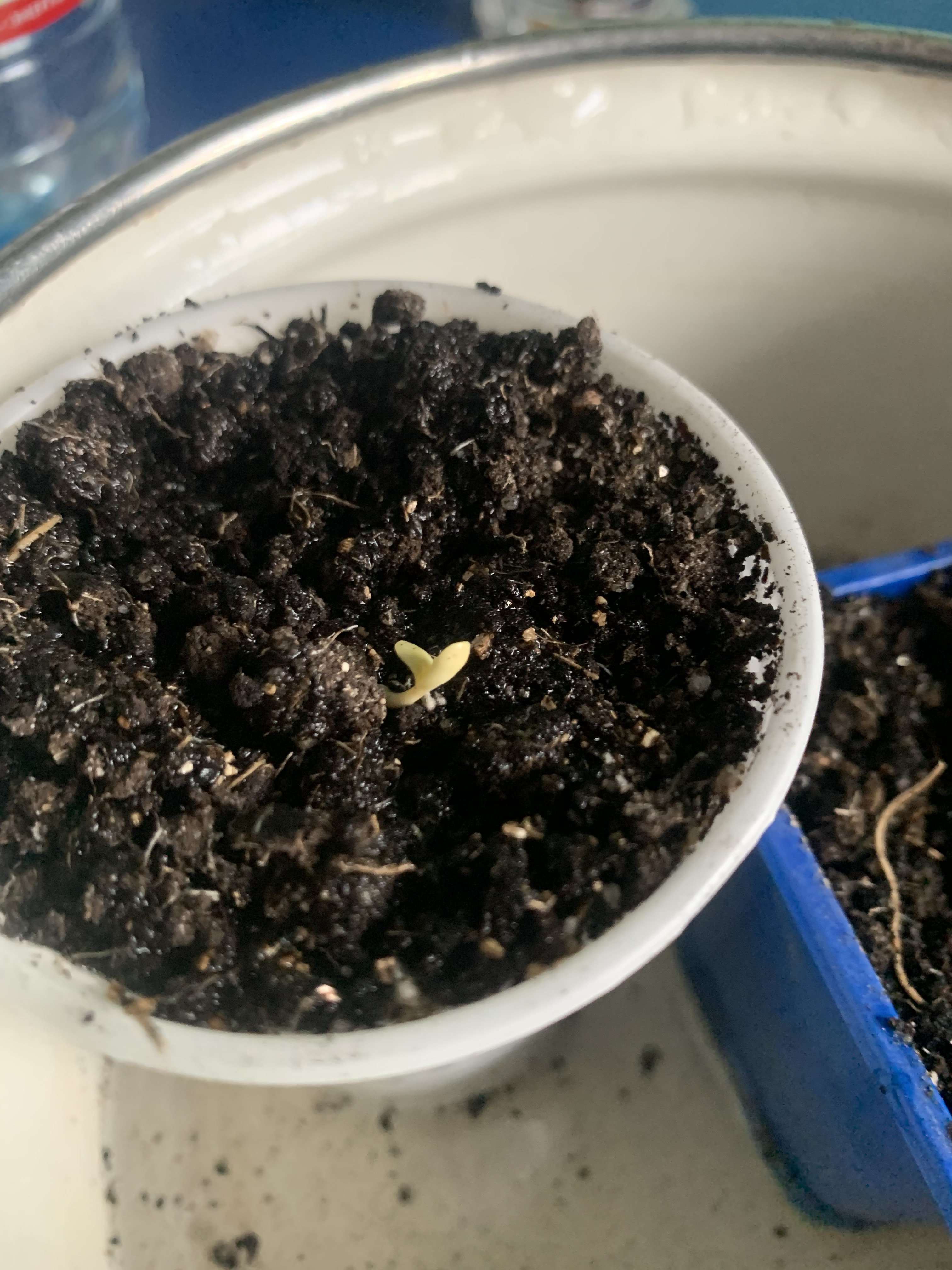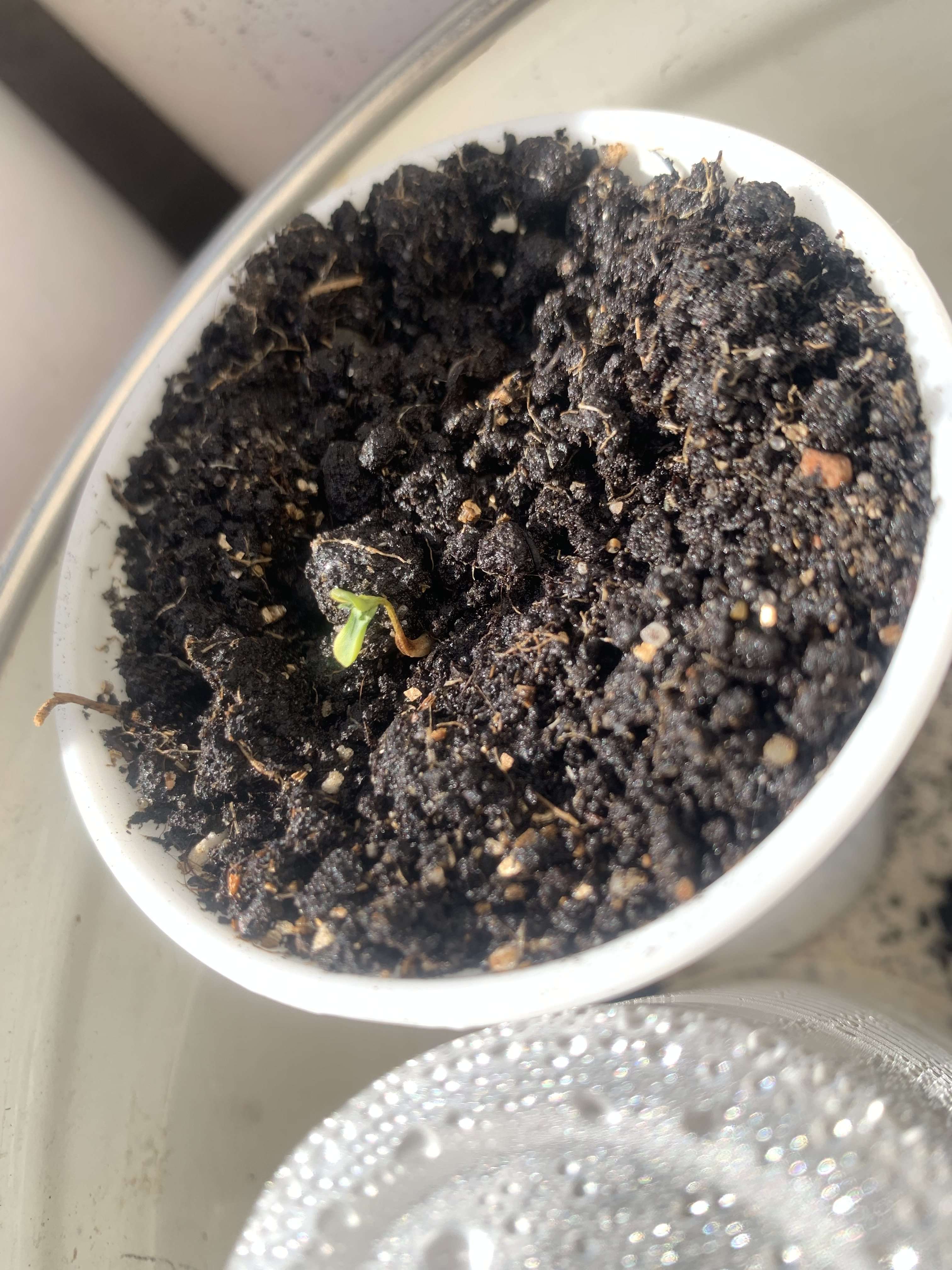 и тут после 24 часов молчания, глянула еще через 12 - а один росток сразу в белом цвете вылез полностью (я вообще такое не люблю, доселе это не приводило к жизнеспособным растишкам)