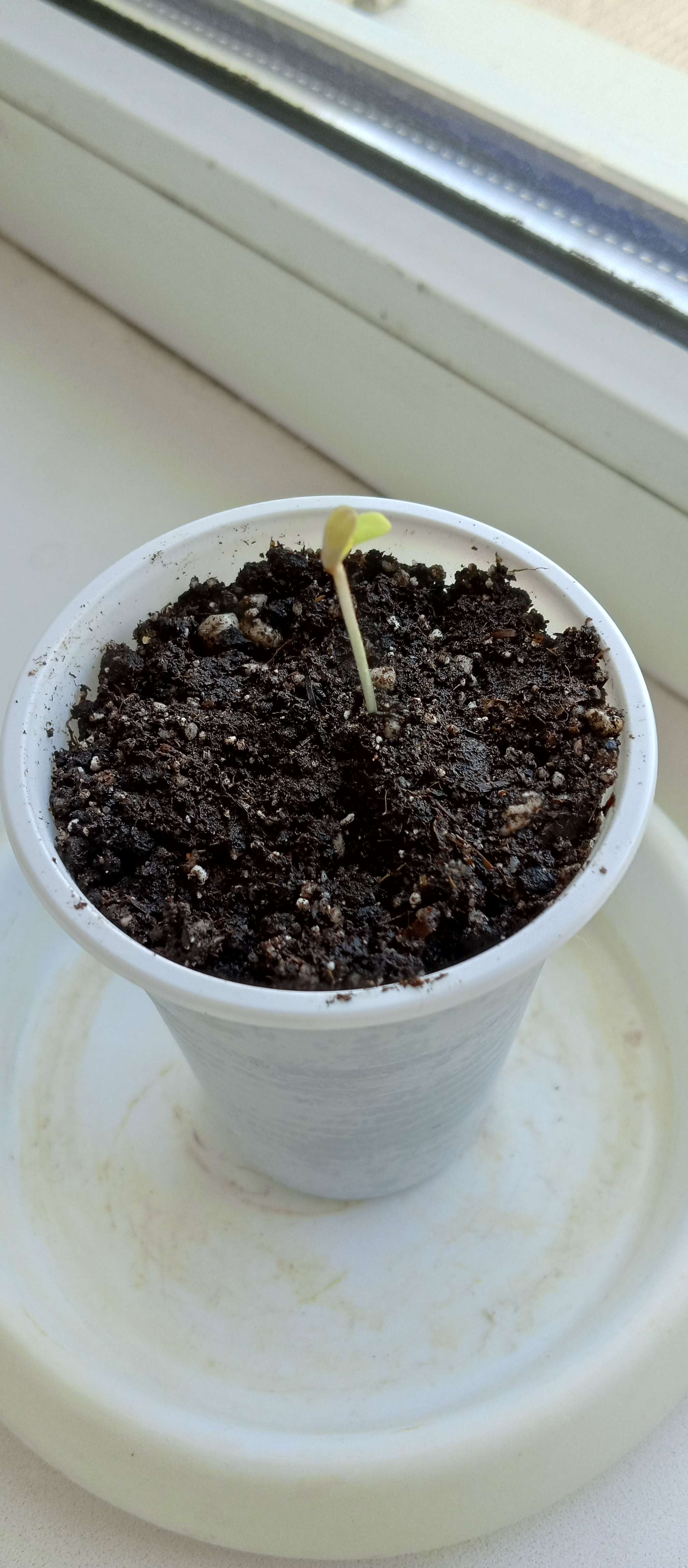Как обычно, (в который раз!!!) рюмка с 50 грамм воды с перекисью 15 капель. Утром 12-го закинул, вечером 13-го уже хвостик был больше 0.7мм. Аккуратно пинцетом хвостиком вниз, 10-30 мл воды вокруг семечки, пульверизатором пару раз, как всегда. Поставил в ванну, там прохладнее и влажнее.