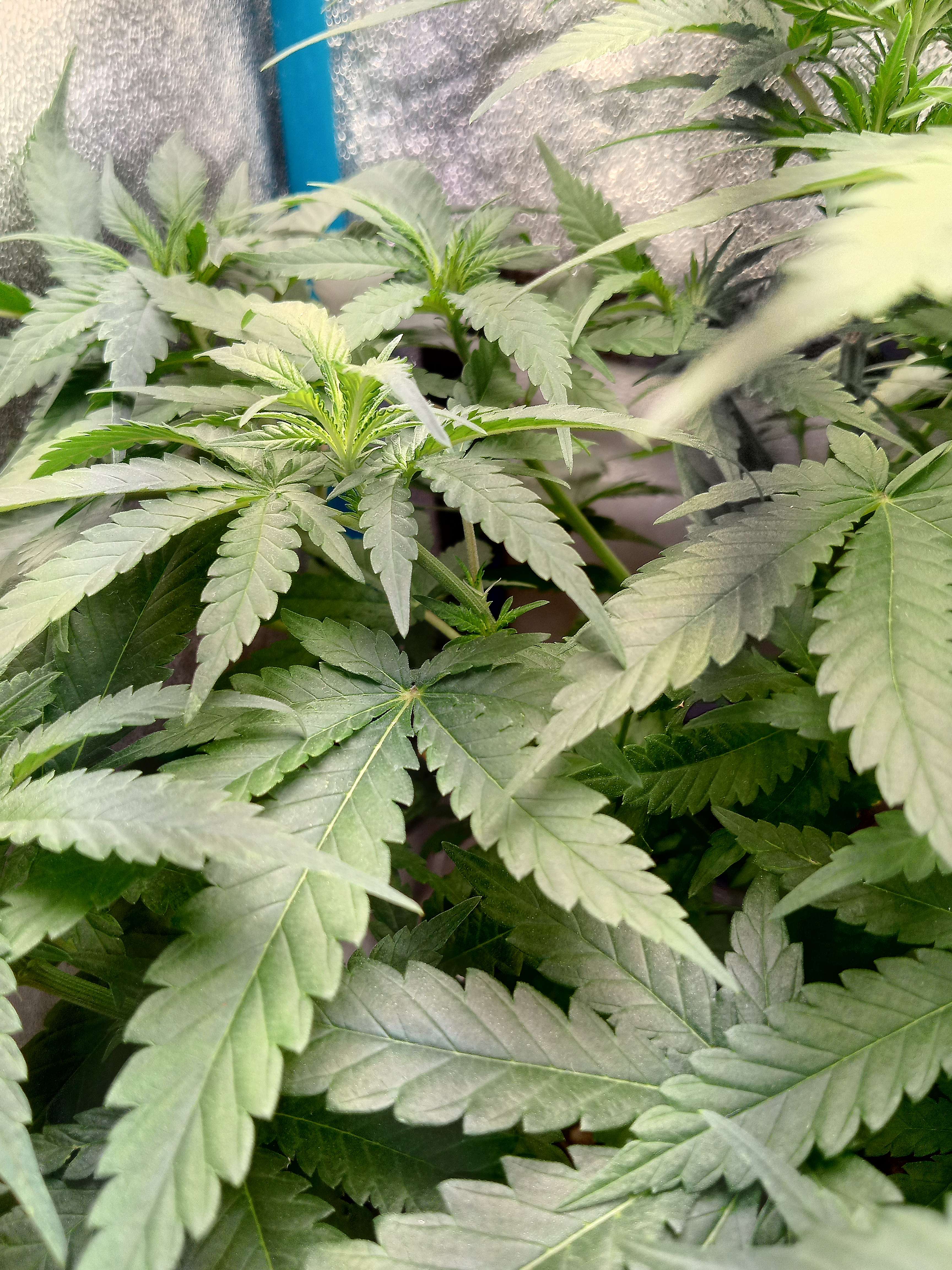 пипл. Давно надо было это сделать , обдербанил крупных лопухов штук 10-12, сука хоть задышала, а то бокс открываешь, а оттуда духан горячий, запашистый валит. 30 температура , 35 влажность была, задыхался кустикус. Сейчас гораздо комфортнее стало, хоть некоторые ветки освободились от бремени, воздух вентилируется лучше, да и в целом , беда с этими лопухами, прут и прут. Обрываешь, растут, забадали. Места мало, ну кто знал, что вот так получится. Пойдет, едем дальше.