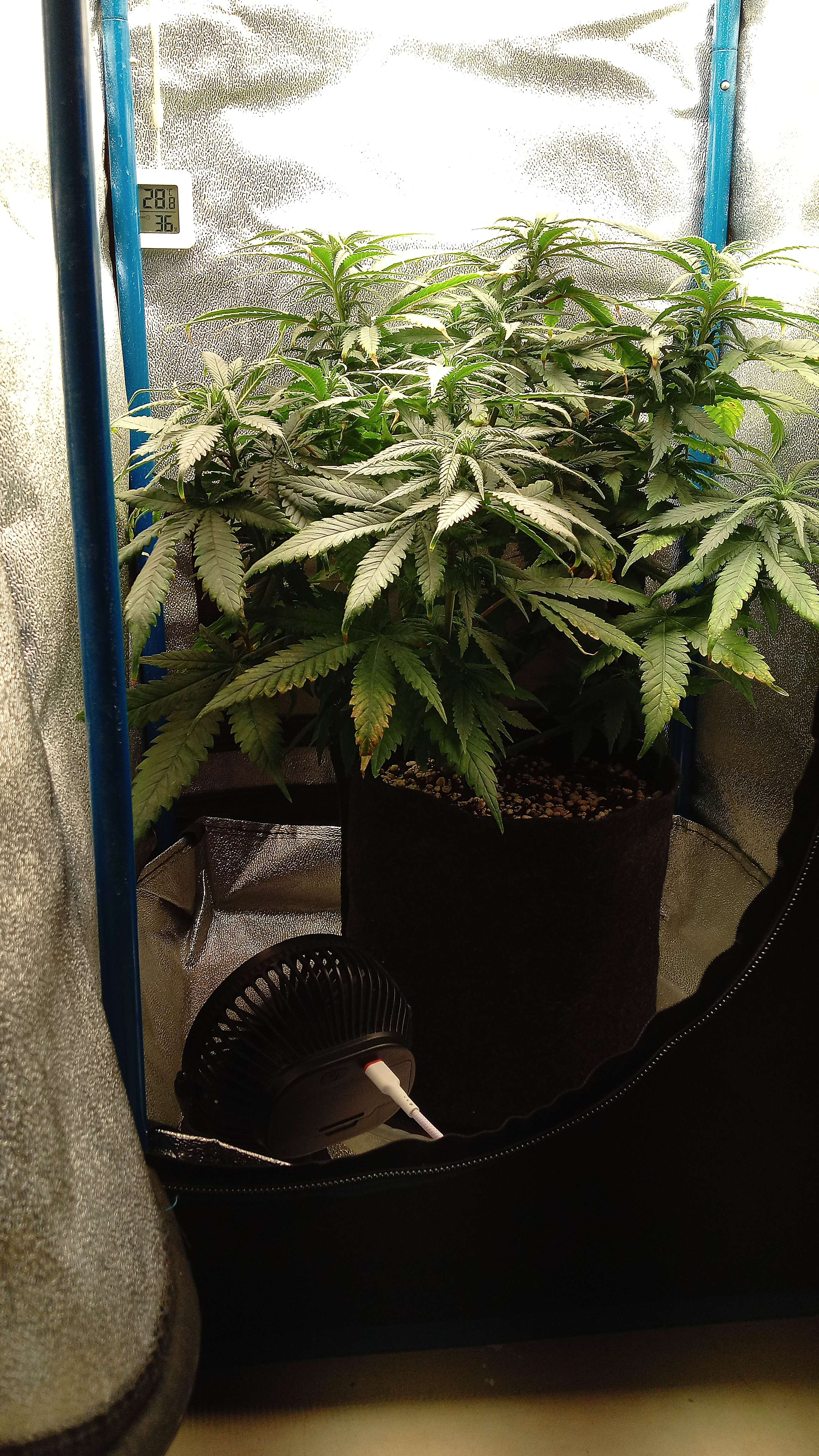 Хаюши пипл! Горшок слегка влажный после вчерашнего полива , в принципе нормально.Пролил 0.5 литра с ph 6.6, ppm 750. 100% ТриПарт на цветение , и ещё добавил 0.5мл.Калмага.Лампу поднял на 10см, пора уже к верху ☝️ тянутся. Пока всё на сегодня.