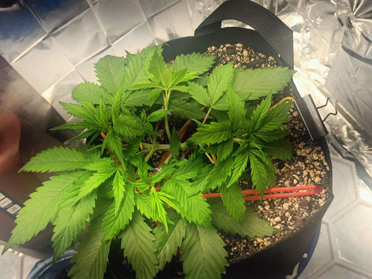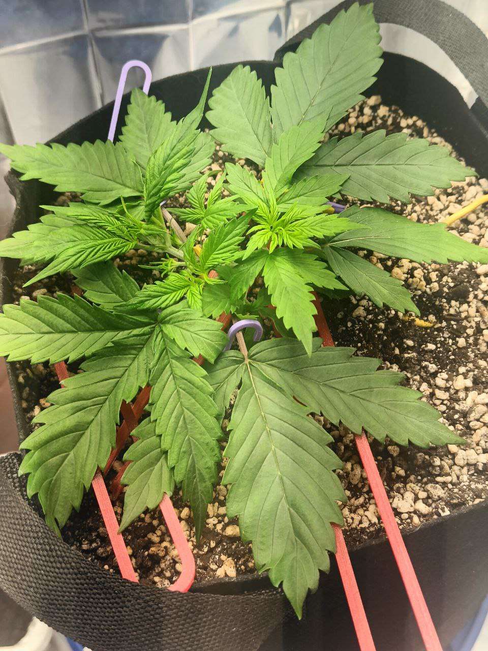 16.04 (22 День) Утро подрастянул листья в стороны,у Тянки подогнул макушку чутка еще,подложил скобы под листья ,чтобы на земле не лежали,вечером пролью по 1 л,а может и чуть меньше,они за два дня только 0.5л выпивают)] Вечер Полив 1л + T.A. Fulvic 2мл/л, с дренажа правда немного но вытекло хватило замерить более менее дренаж выход 6.7 ph 950-1000 ppm