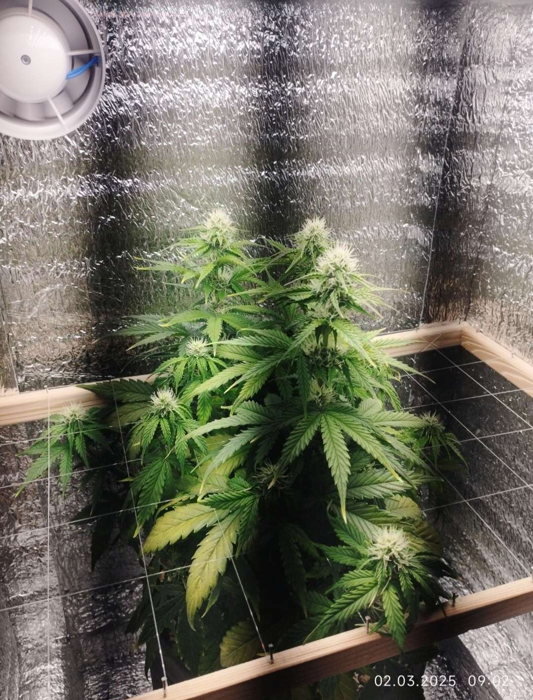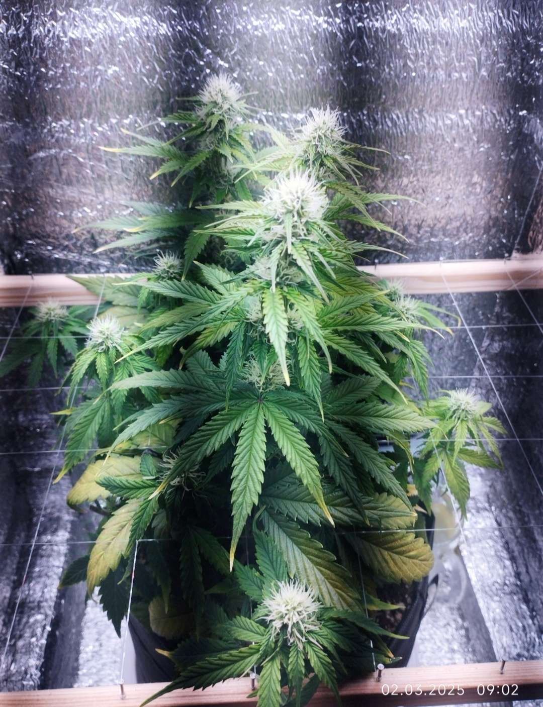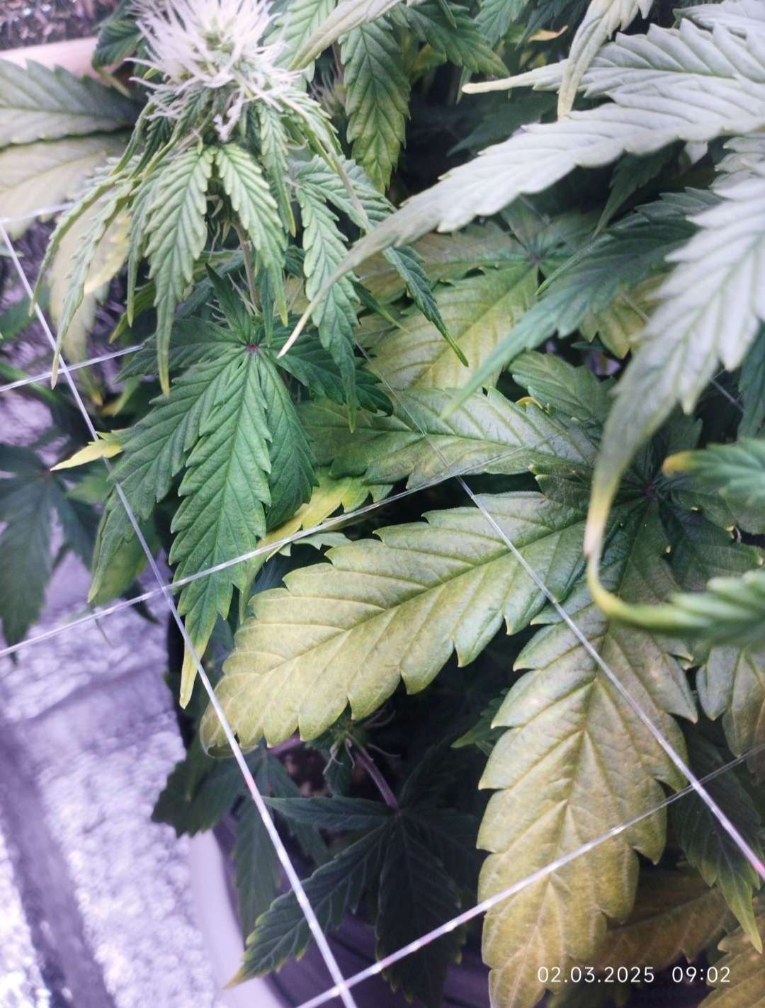 Подошла к концу 7 неделя, вторая неделя цветения, идём без удобрений (жаль что на руках только минералка). Полив раз в 3 дня, по 1л 6.5ph, думаю следующий полив проводить уже с удобрениями, ибо не нравится мне как себя чувствует растишка, сегодня утром обнаружил, что, некоторые лопухи начали желтеть, может кто подскажет, в чем дело!? А так, в целом, развитие идёт полным ходом, руки уже чухаются снять пробу:deal