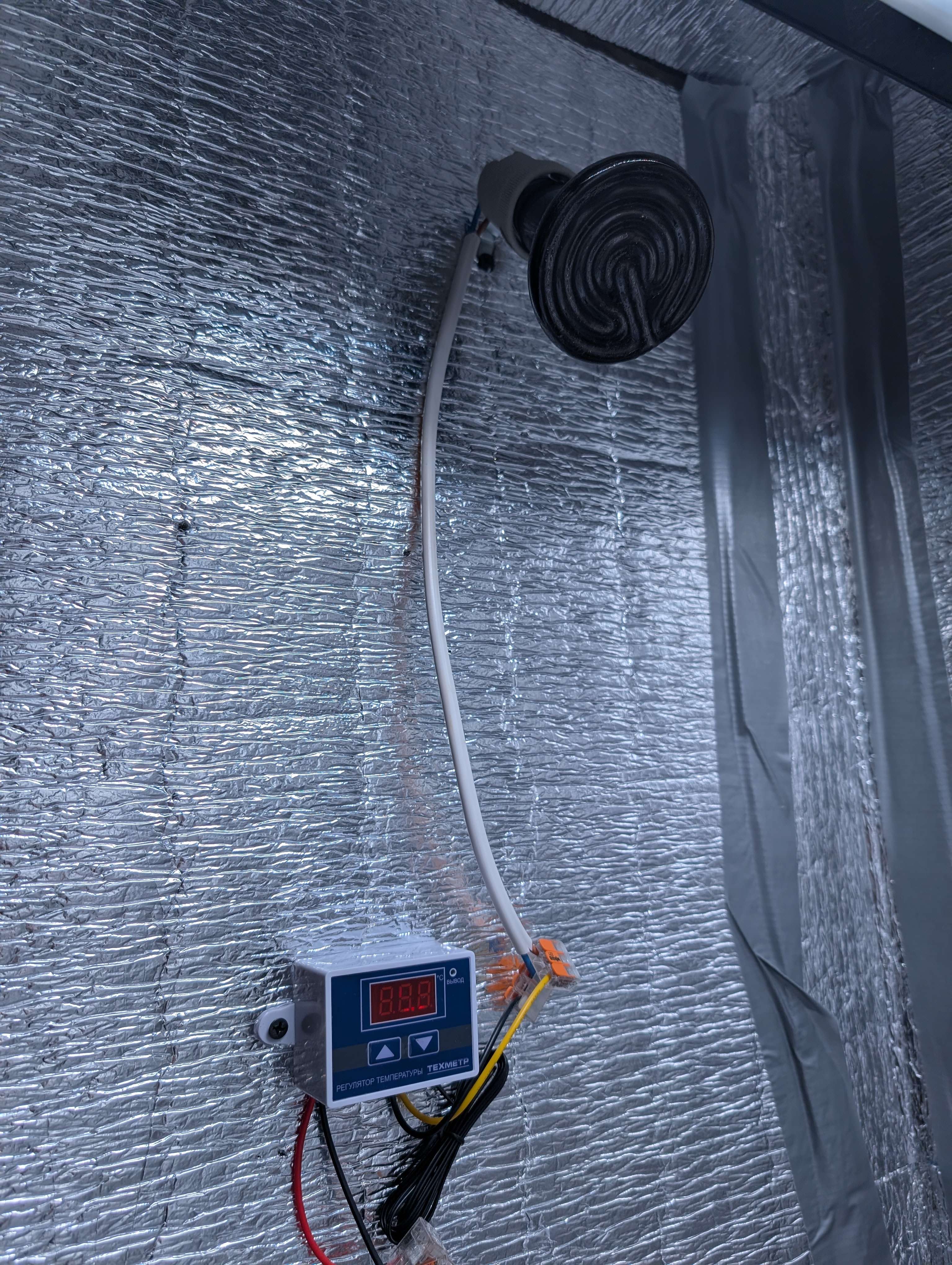 Терморегулятор + керамическая лампа для обогрева 50w (как в террариумах) через месяц на чердаке будет -15, поэтому решил что лишней не будет
