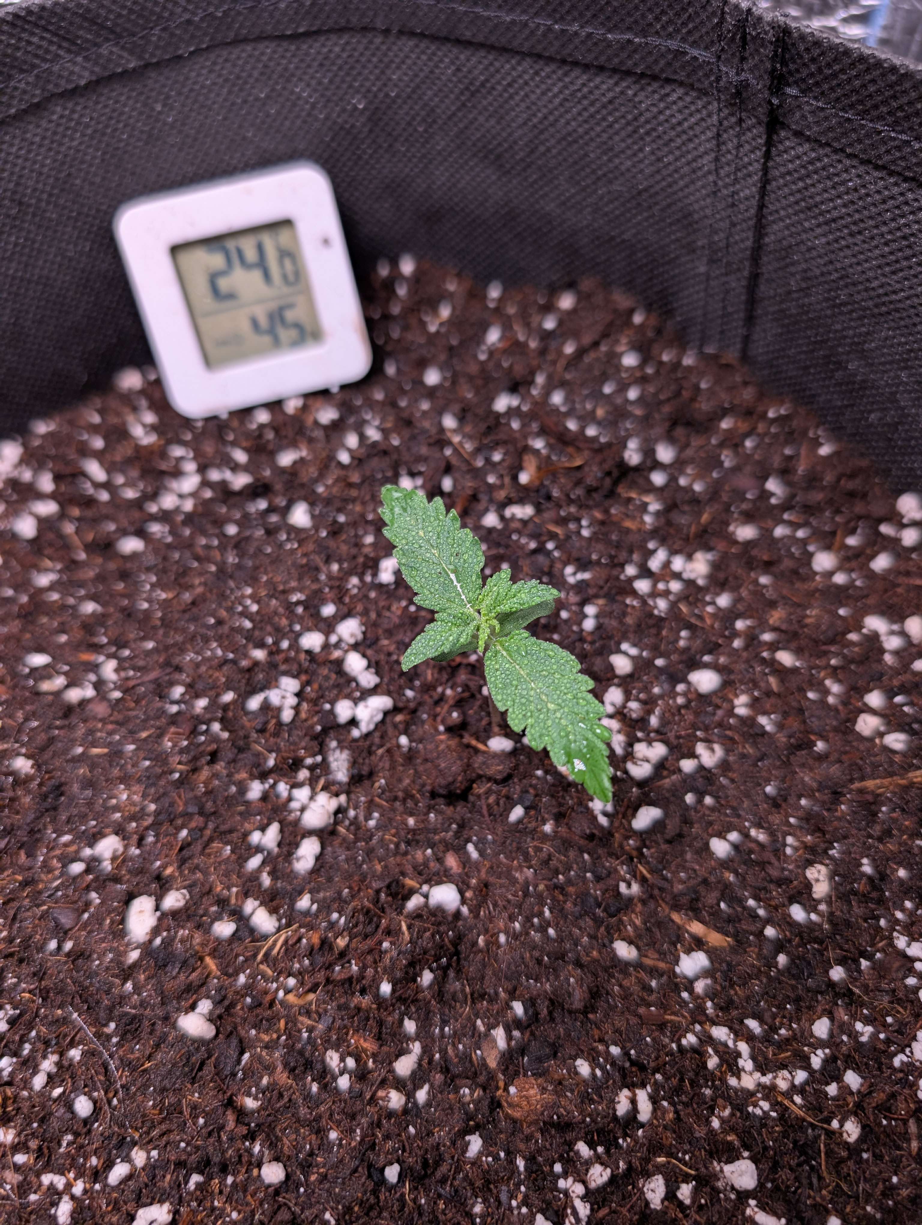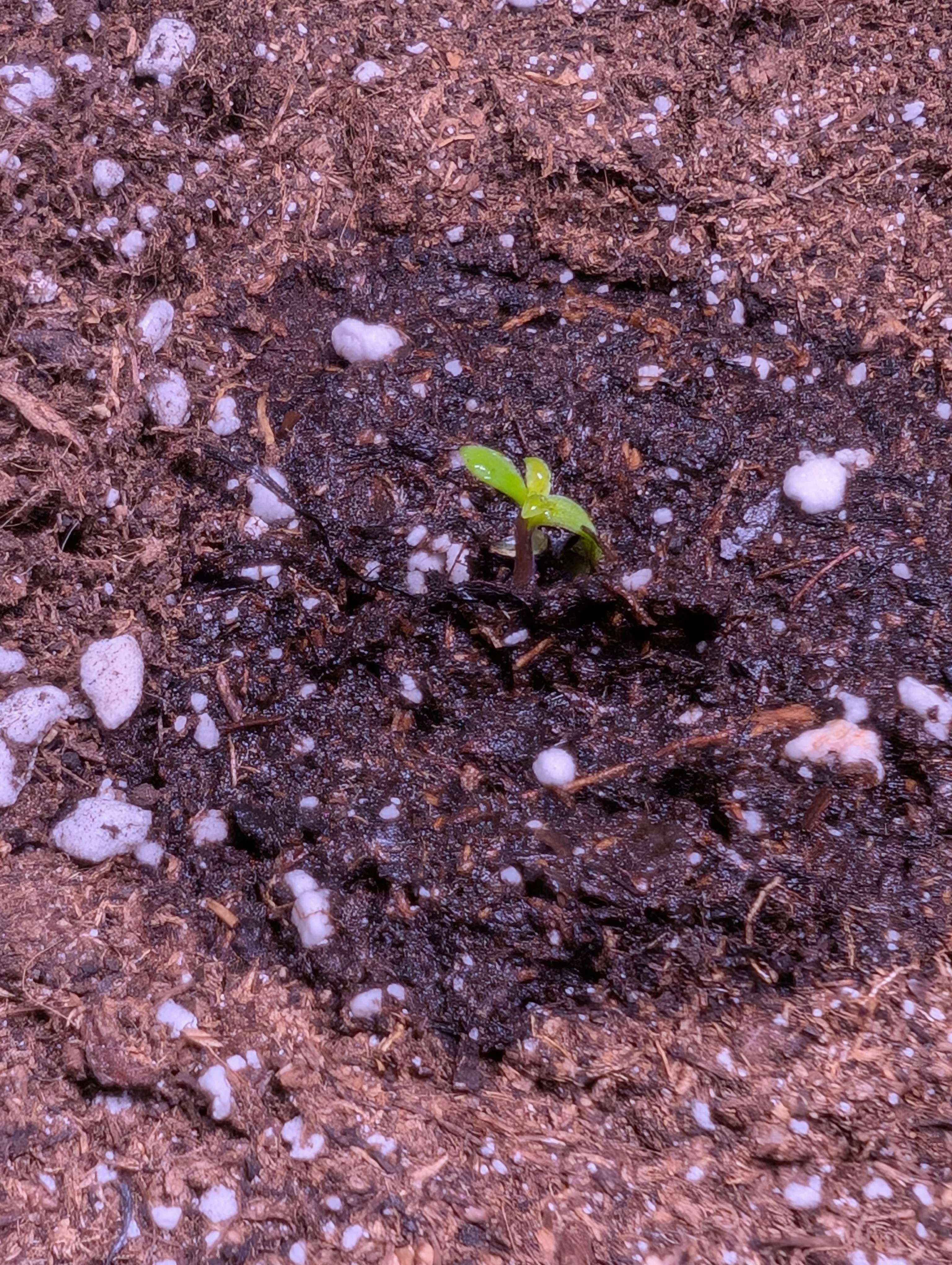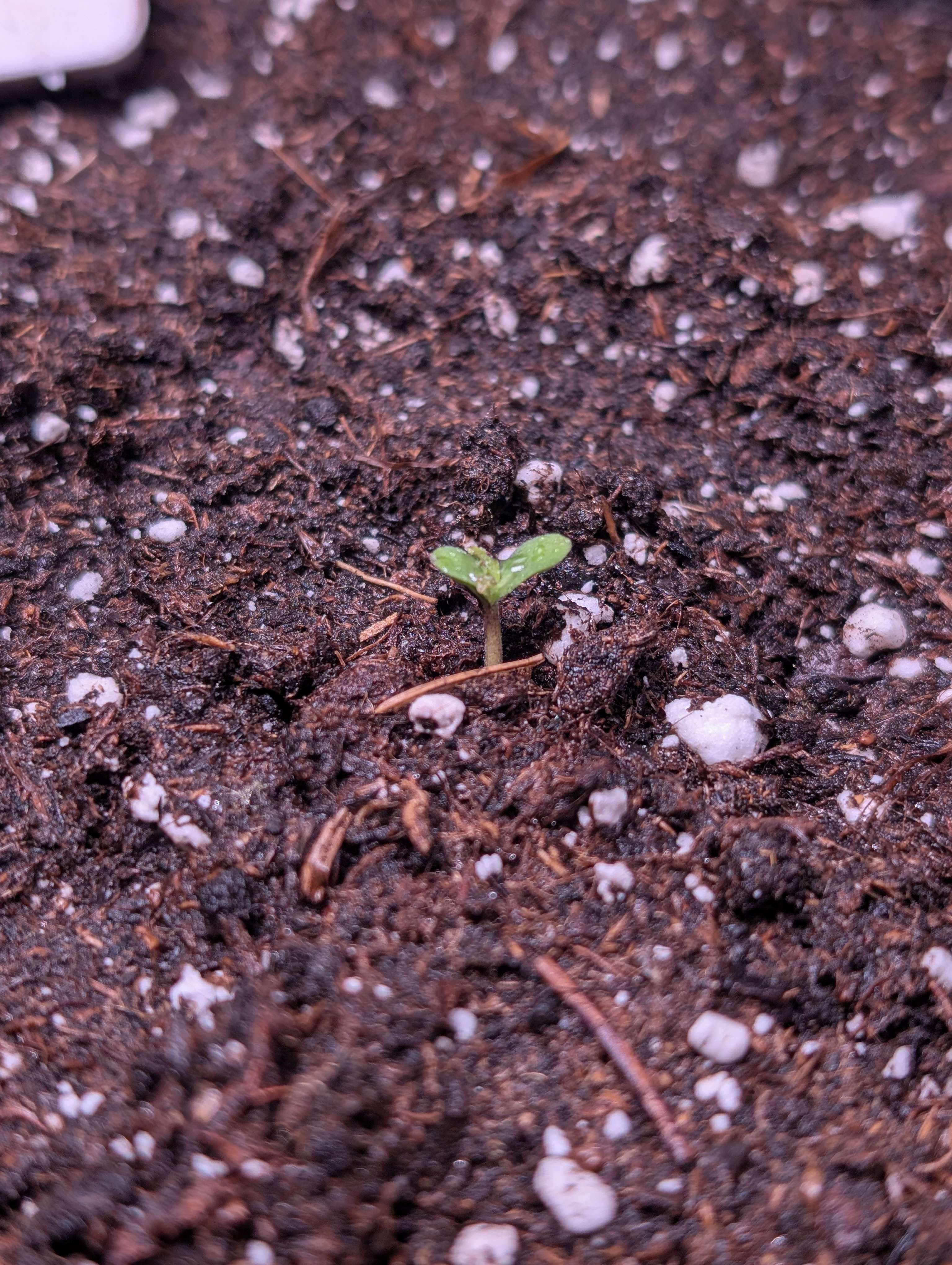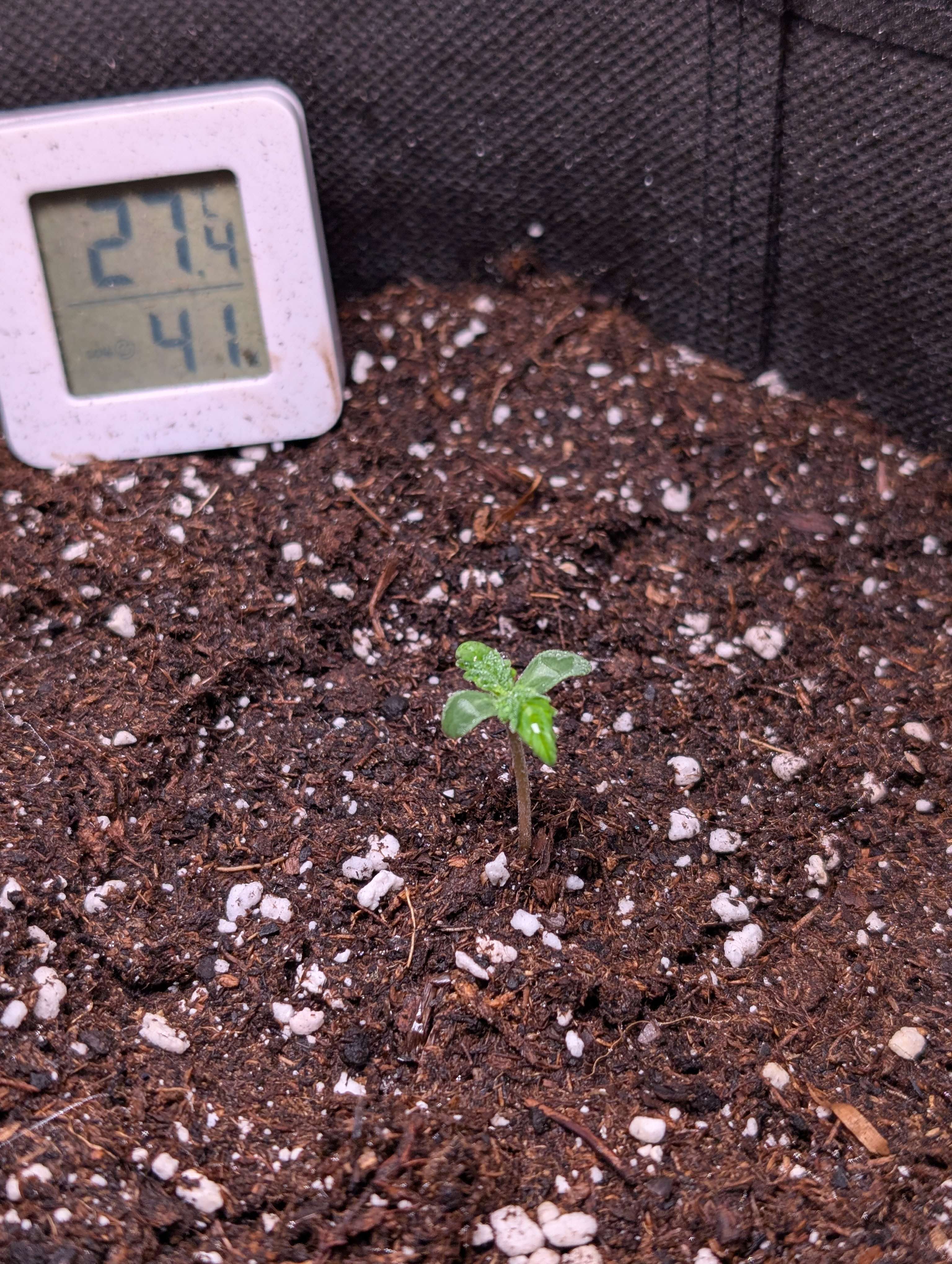 12.11 - Ночью проросла танжи, днём посмотрел, а она уже скинула каску и горила тоже проросла. Попшикал вокруг, подержал пару минут без стаканчика и накрыл.