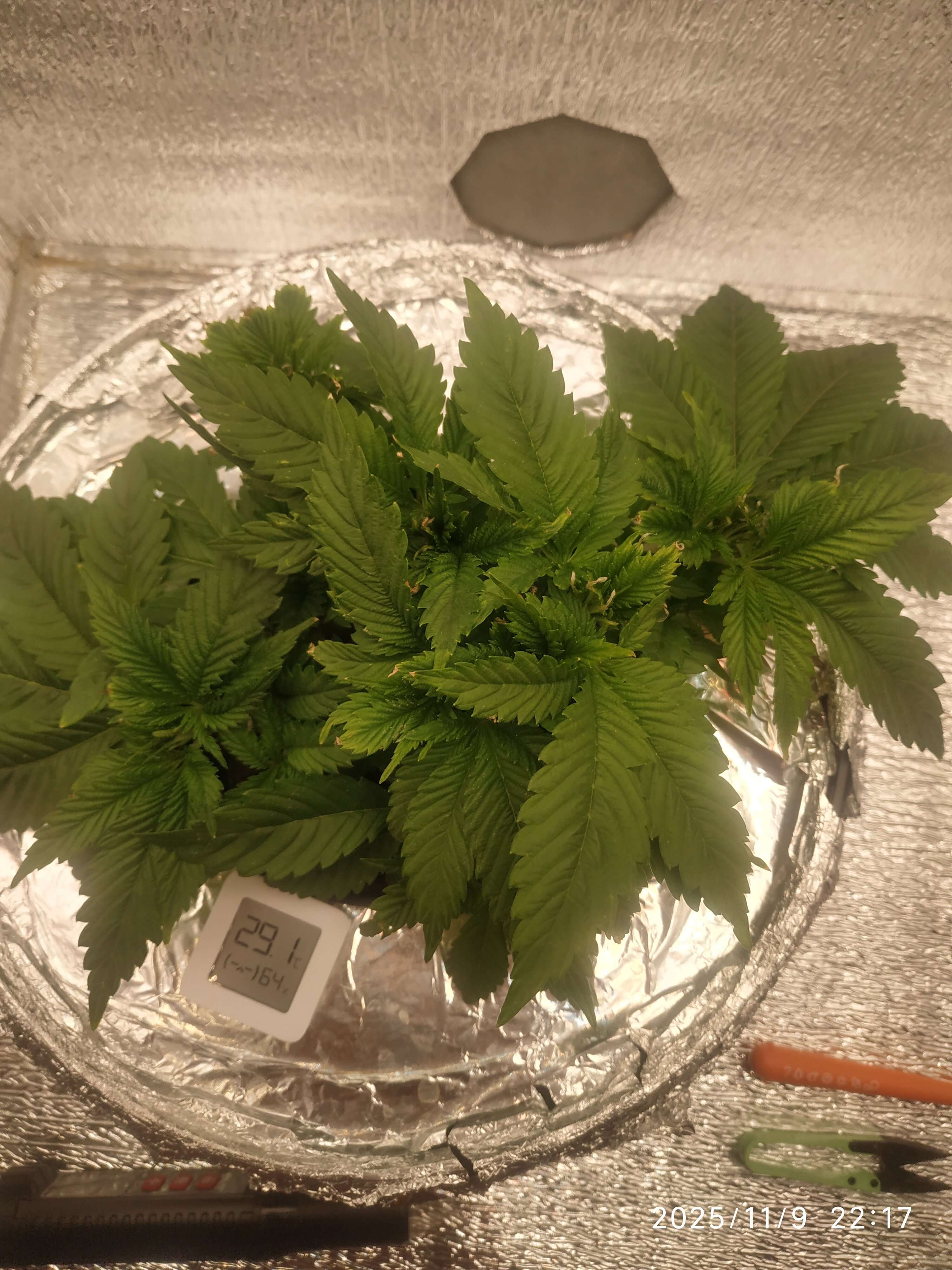Неделя началась с того,что она сорвала резинку и выпрямилась. Заменилараствор.Добавила удобрений гроу -1,8 мл/л; микро- 1,2 мл/л; блум -0,6мл/л это на 15 литров рабочего раствора. Подрезала листья.