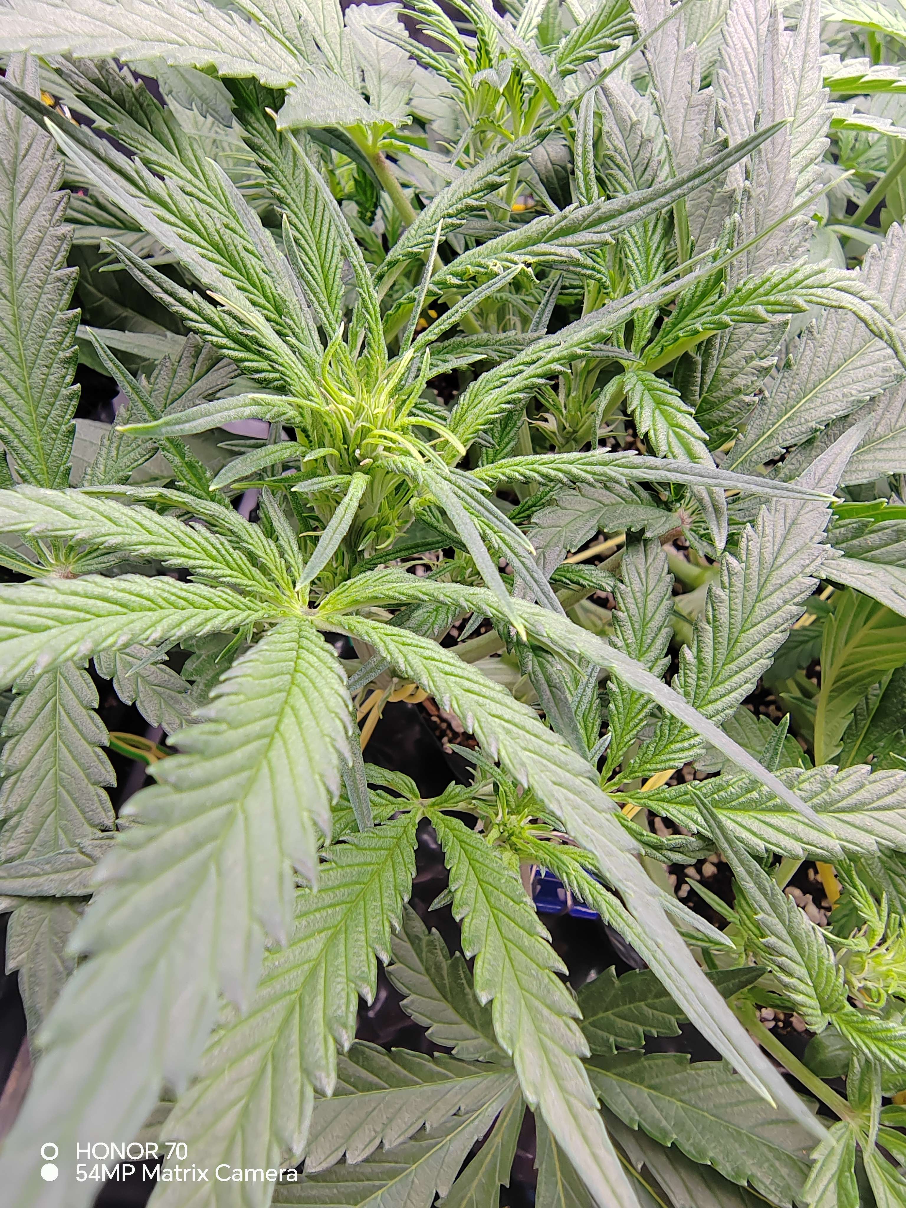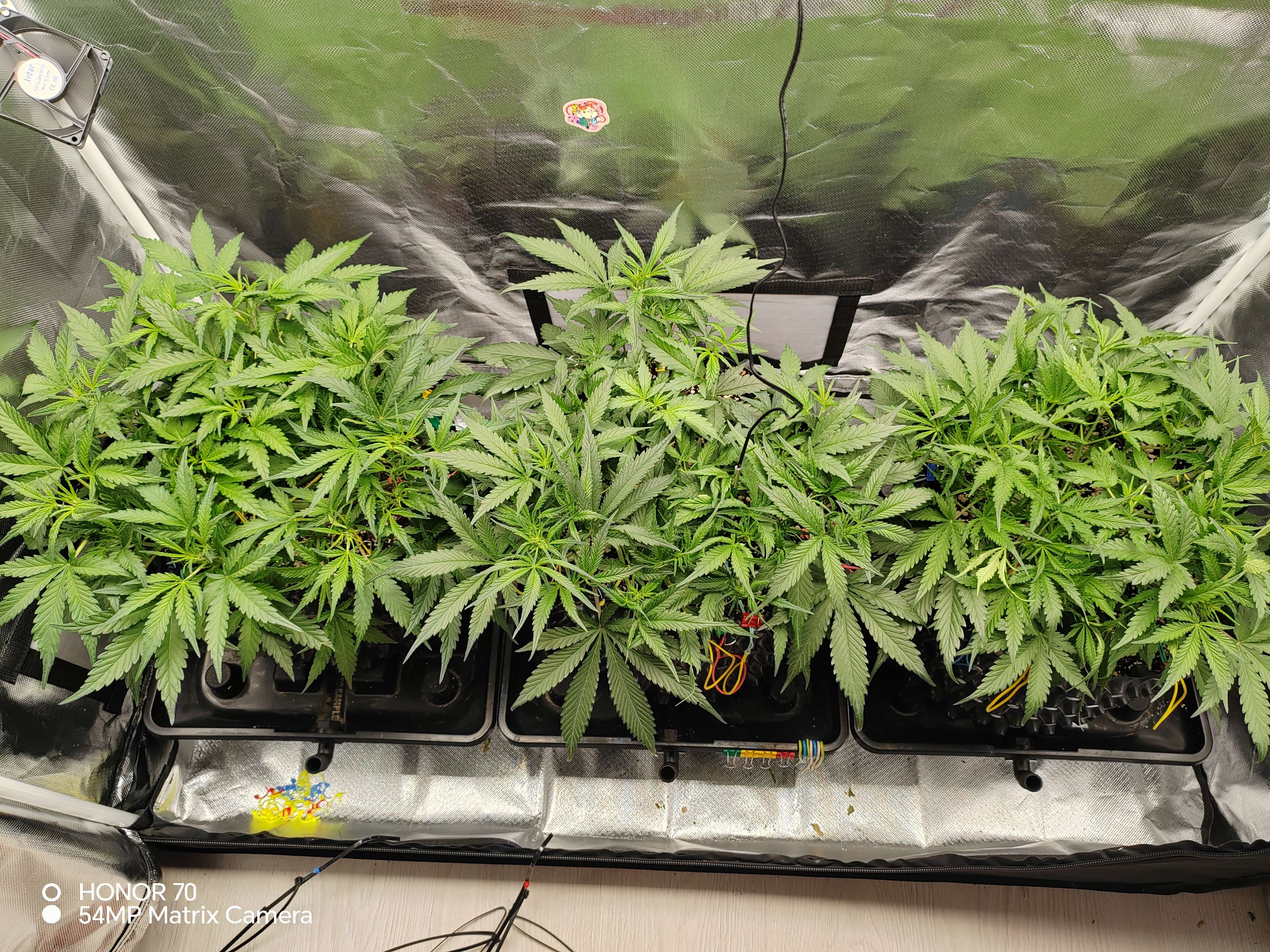 Продолжаю понемногу подгибать, так же приходится потихоньку обстригать ботву, ее реально очень много... Появился запах, как мне кажется проскальзывают какие то кофейные нотки. В целом, на мой неопытный глаз, все идет нормально. Единственный момент это начал поднимать ppm,так как ростихи недоедали. Судя по показаниям дренажа. Дэфоф пока небыло, но не буду до этого доводить, так что потихоньку продолжаю наваливать базы в компот.по старой схеме, каждый третий полив, сначала вода с калмагом до 200ppm,и выровненым ph 5,8 по 3,5 литра каждой. Затем по 3,5 литра компота