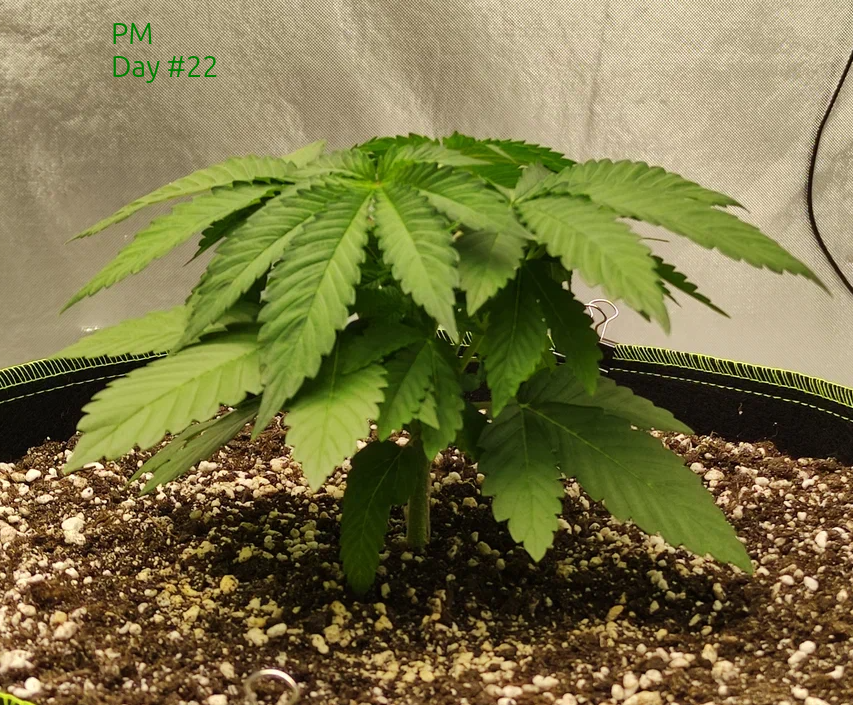 Убавил свет с 50% до 38% (от 700 Вт), хочу проверить как Маркер отреагирует, а то высота у него 14см (у Джанки 24, это при всходах в один день) и кустится вширь.