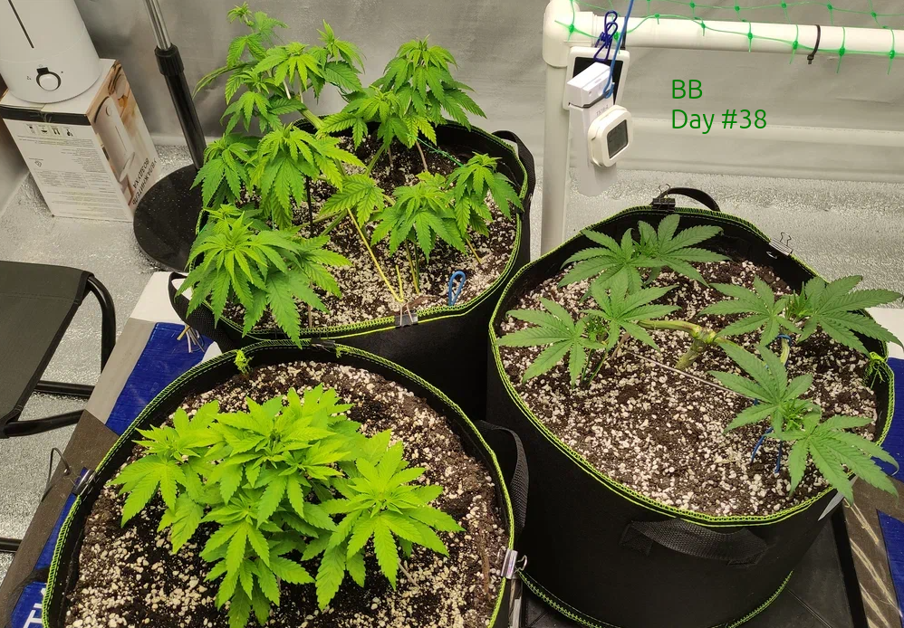 Среди недели заметил, что кончики больших листьев загибаются вниз, как "коготки" -- признак переизбытка азота, при темно-зеленом цвете листа.