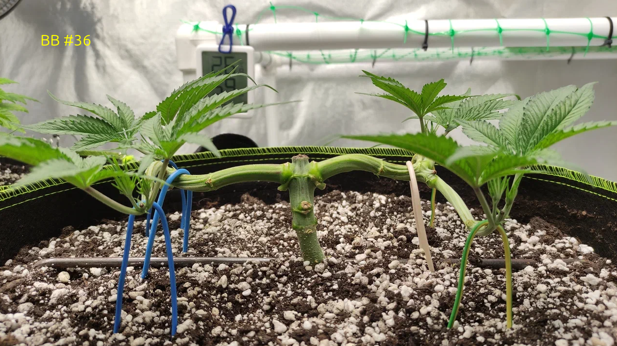 На этой неделе продолжаю формировать куст. Подгибаю восемь новых узлов, которые должны стать основными колами.