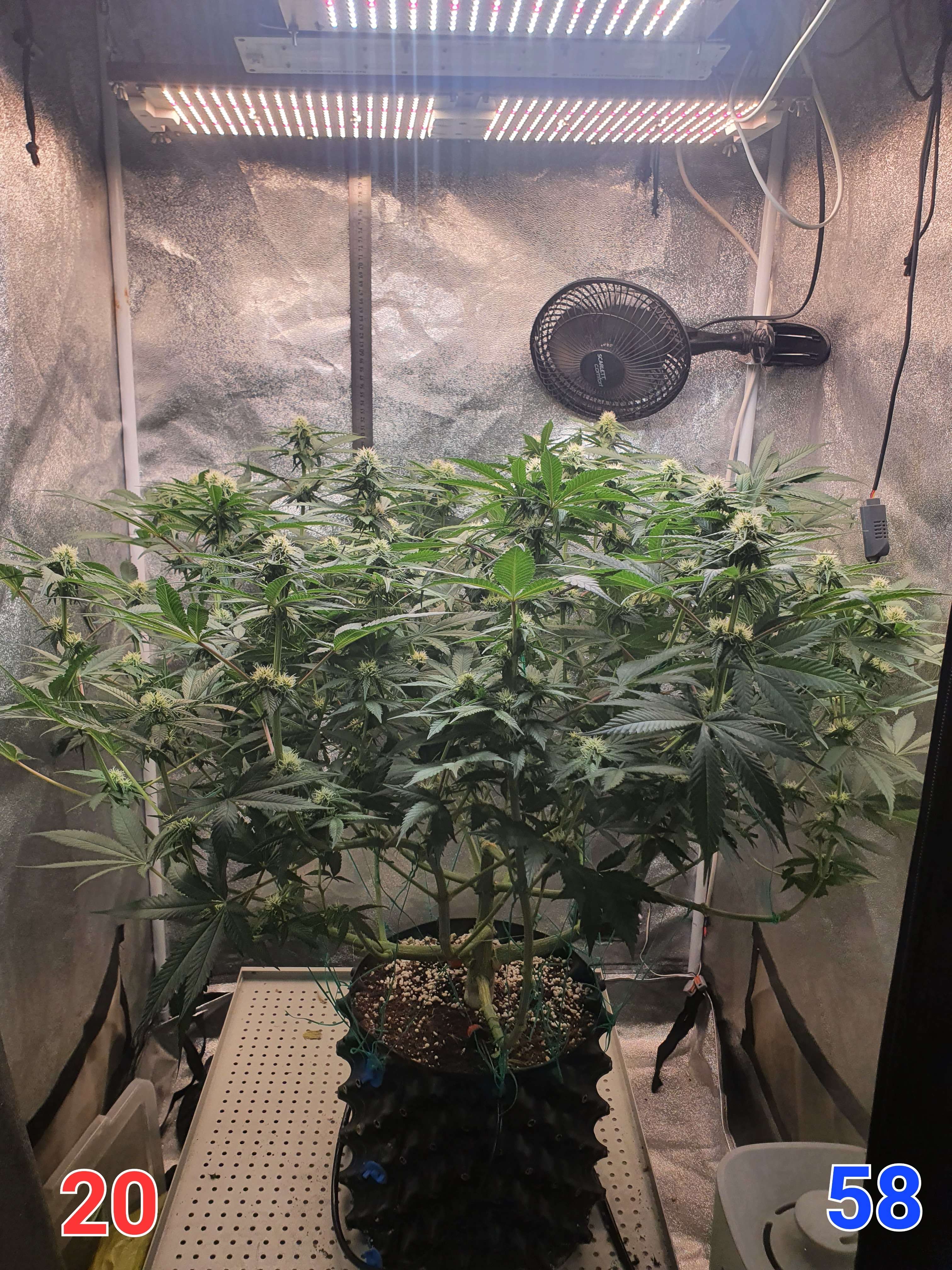 На этой неделе решил потренить куст, на 57й день. Убрал низа, чутка лопухов и растянул. В течении недели сформирую финальный вид куста. После тренировки дал по листу Simplex vitas, посмотрим на реакцию.