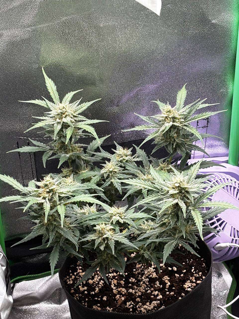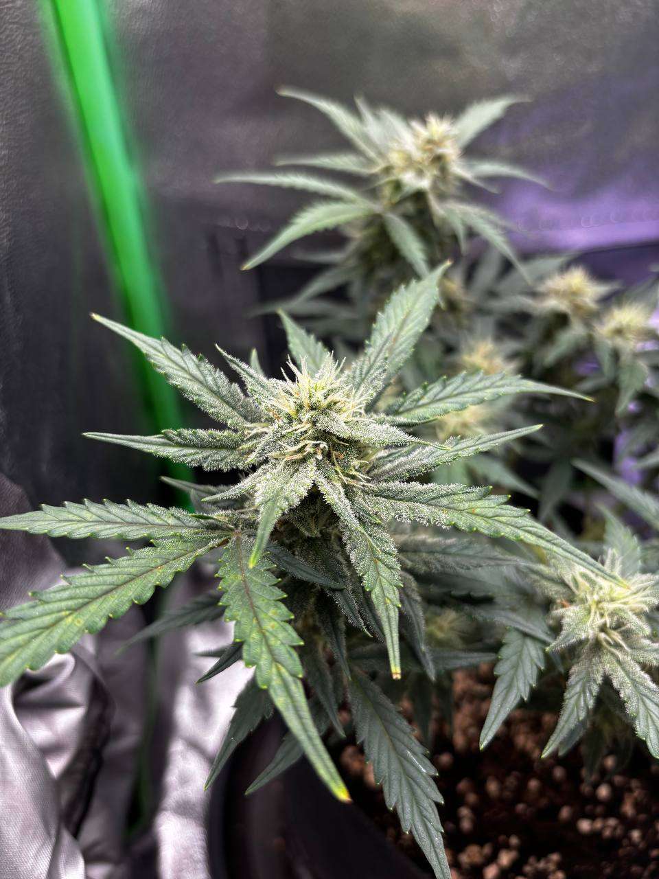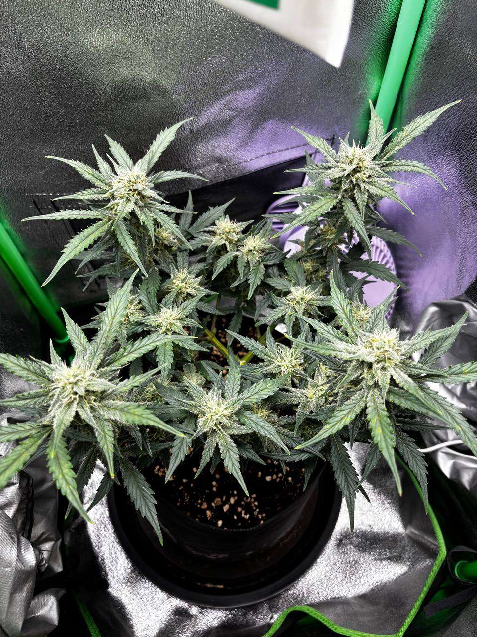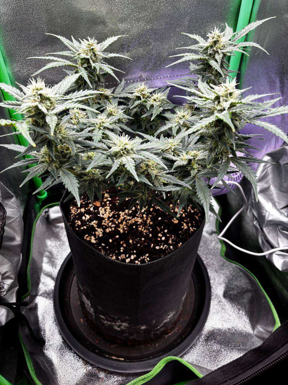 Началась 9 неделя, шишки за неделю нормально набрали. Думаю буду срезать через 2 недели где-то, может попозже. Поливаю пока чистой водой, кушать вроде не просит. Пахнет каким то кисло-сладким дизелем. Добавить особо больше и нечего, все хорошо.