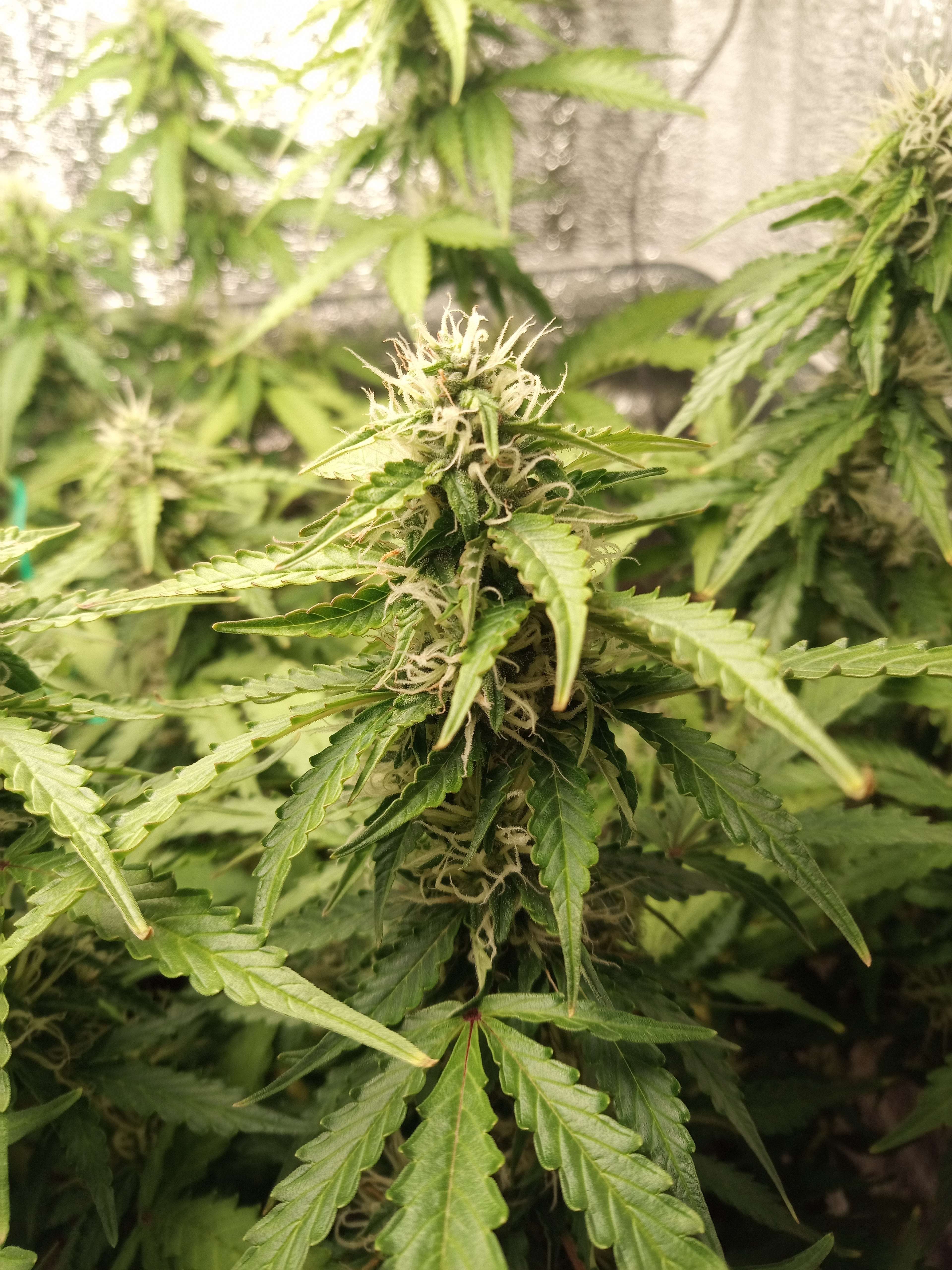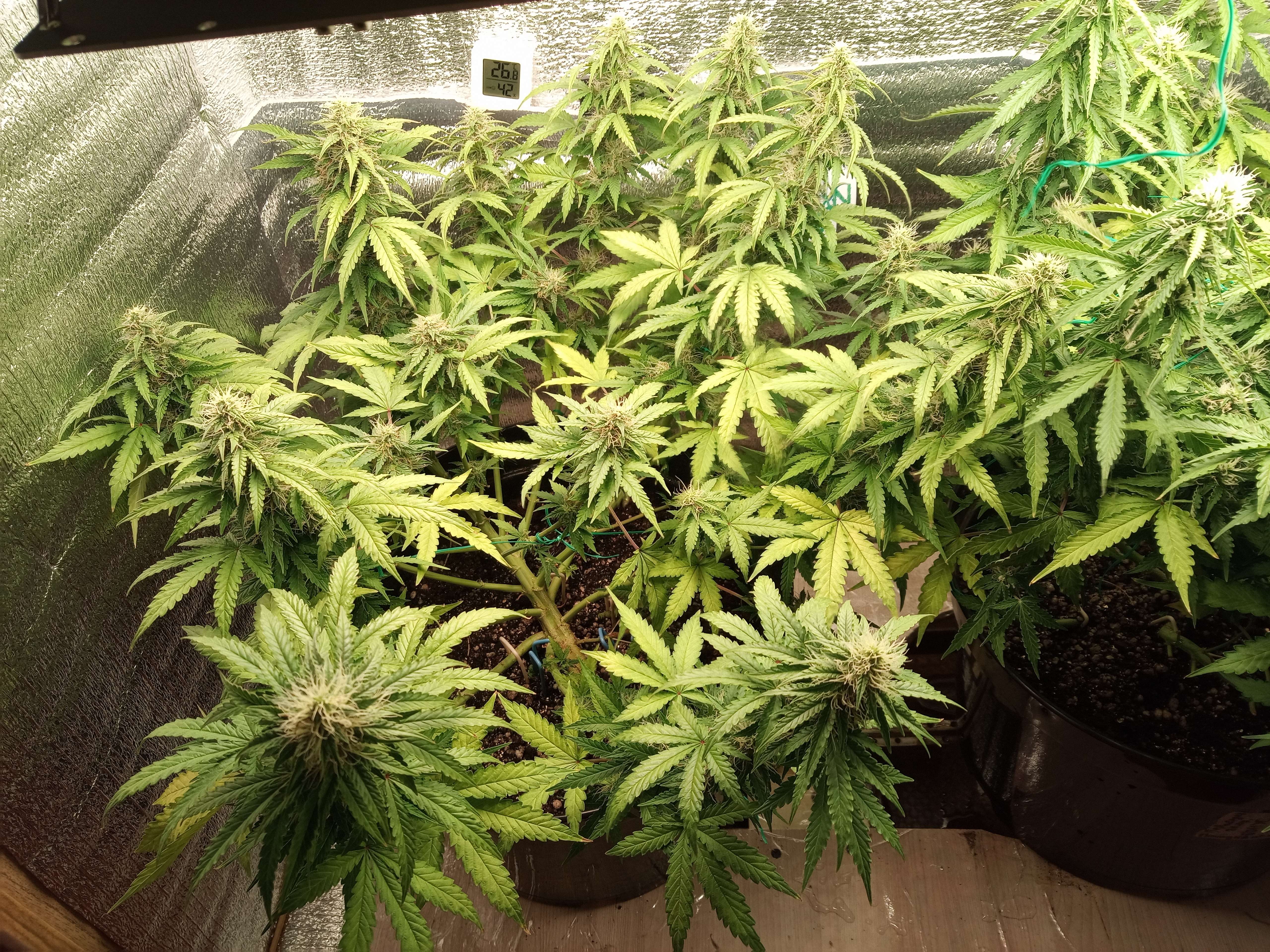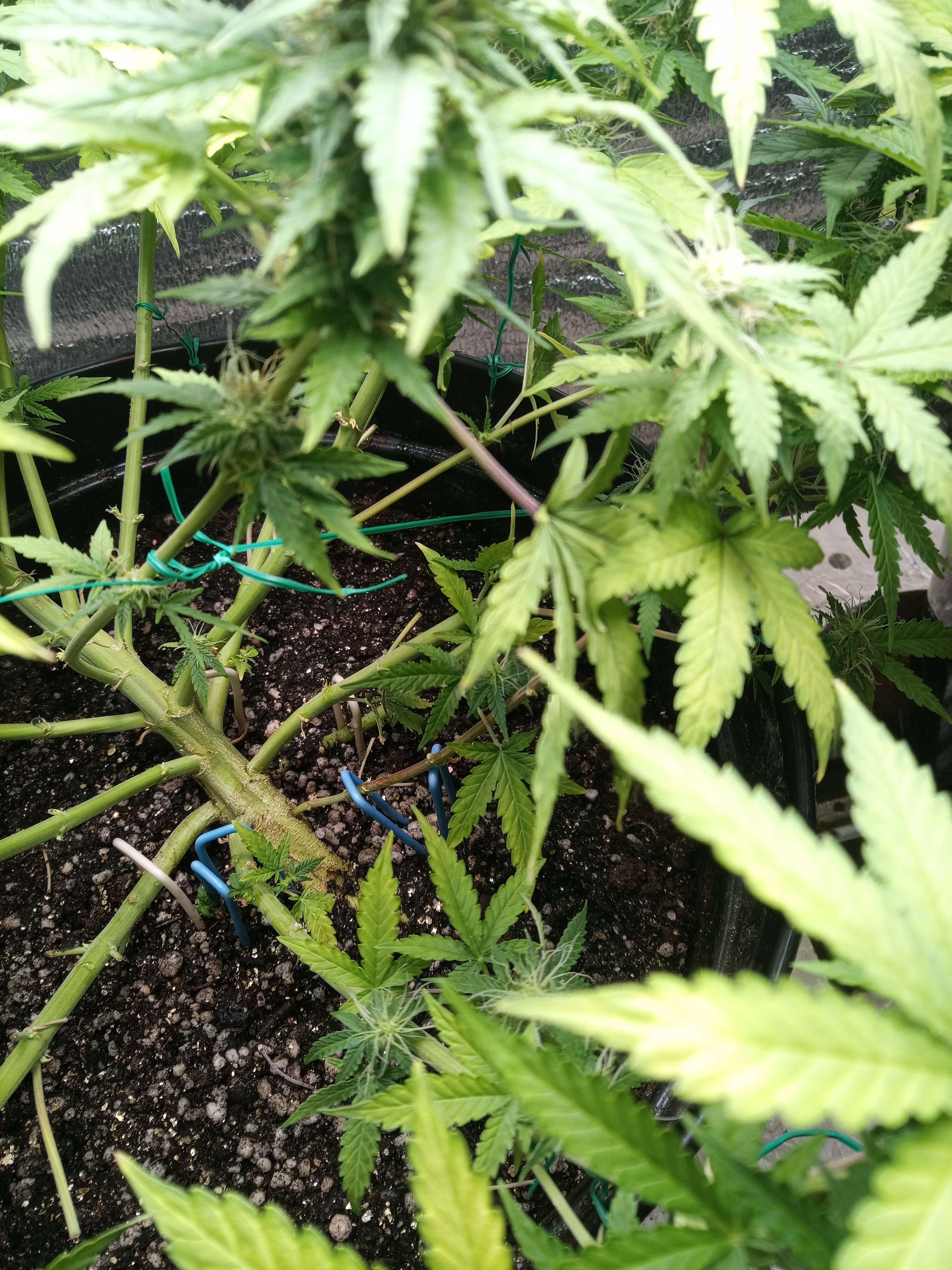 подогнул кореша, да прямо так удачно получилось, теперь середина куста свободная, солнце просвечивает до земли и светит на все ветки сбоку, потому что они полулежа. даже самая нижняя ветка-недоросток оказалась прямо на свету, а я ее уже резать хотел.