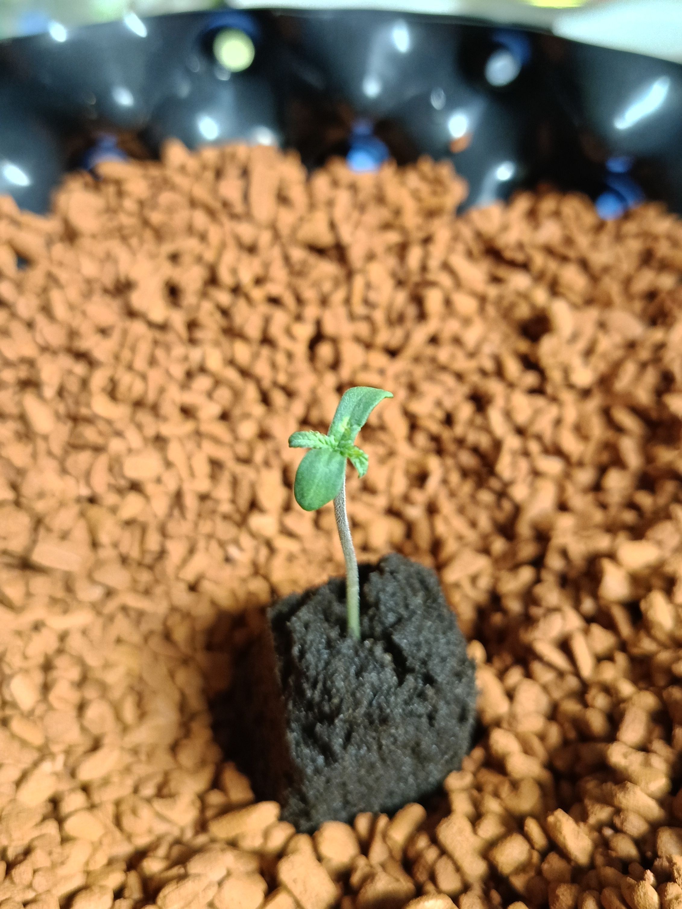 Семку замочил в рюмке осмоса с добавлением перекиси на 10 часов, затем в кубик Root Riot, острой стороной ореха вниз. И, спустя чуть больше двух суток росток показался на свет.