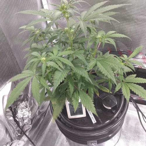 На шестой неделе растишка показала первые признаки цветения. Сам кустик стал заметно выше и пышнее – от медленного развития на первых неделях вегетации он перешёл к более стремительному росту в последние недели веги и начальной фазе цветения. Показатели окружающей среды остались без изменения. Гровер добавил в схему питания Recharge – экспериментальное органическое удобрение. Его количество составляло 1.3 мл/л.
